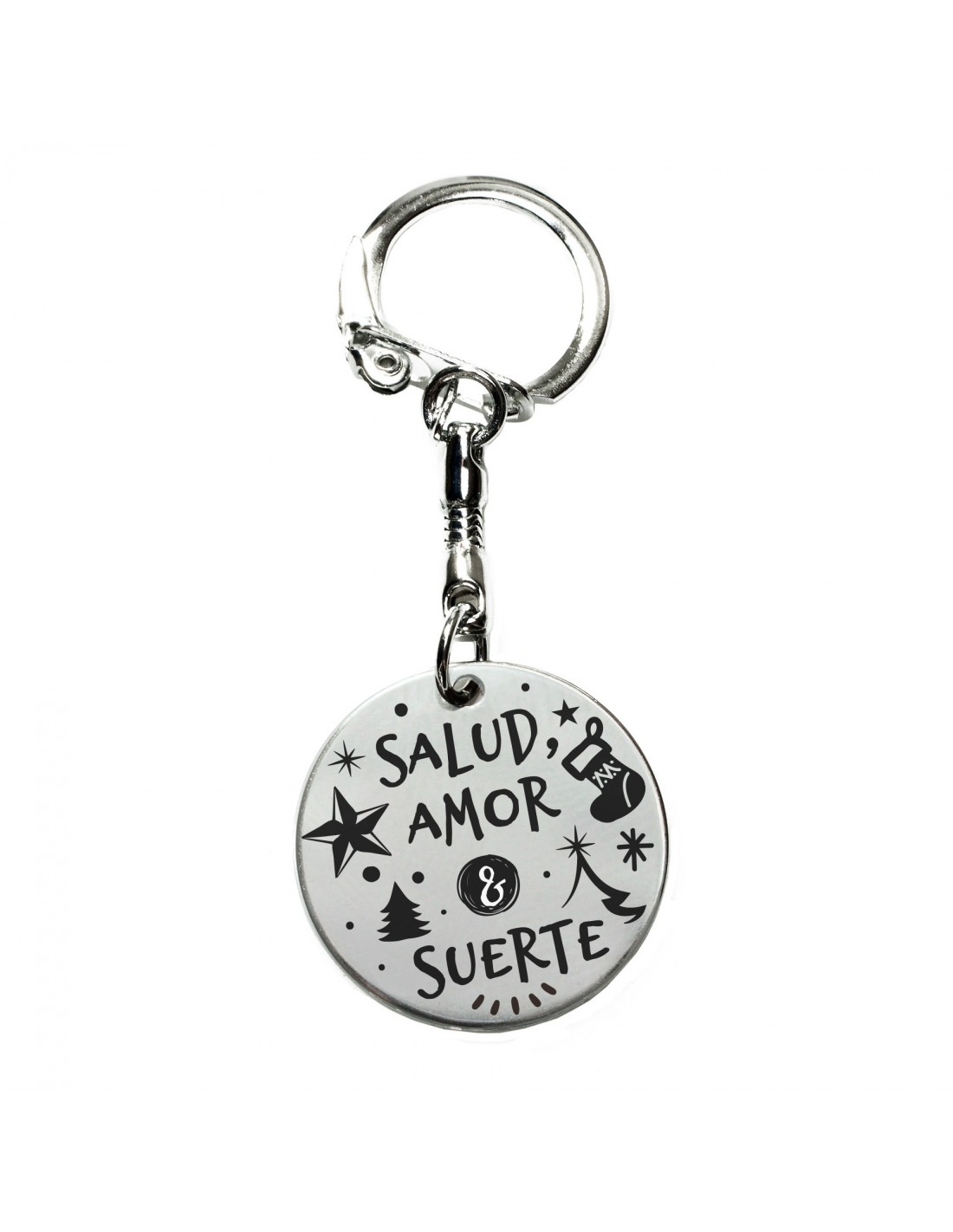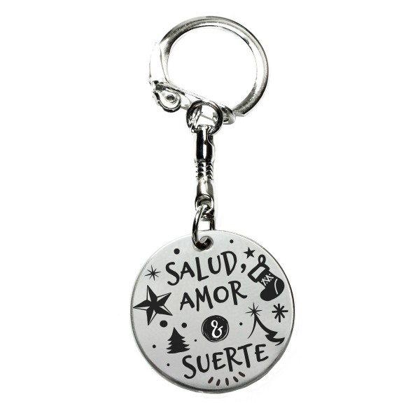 Llavero acero inoxidable con diseño navideño y mensaje de buena suerte, el detalle perfecto para regalar en Navidad, Papá Noel o amigo invisible.