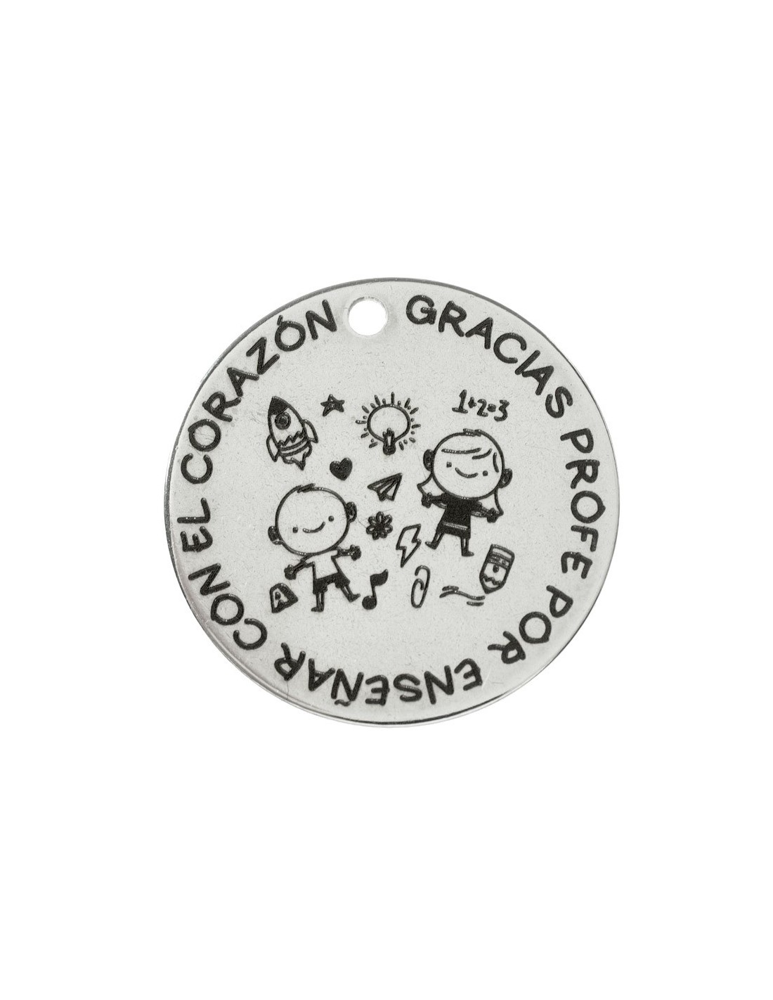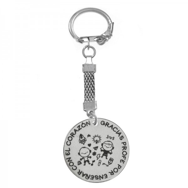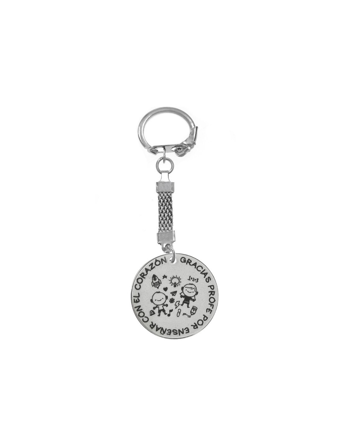 Llavero para PROFE con mensaje "Gracias profe por enseñarnos con el corazón" fabricado en acero inoxidable
