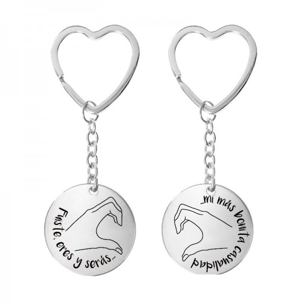 Llavero San Valentín fabricado en acero inoxidable con románticos mensajes grabados muy especiales.