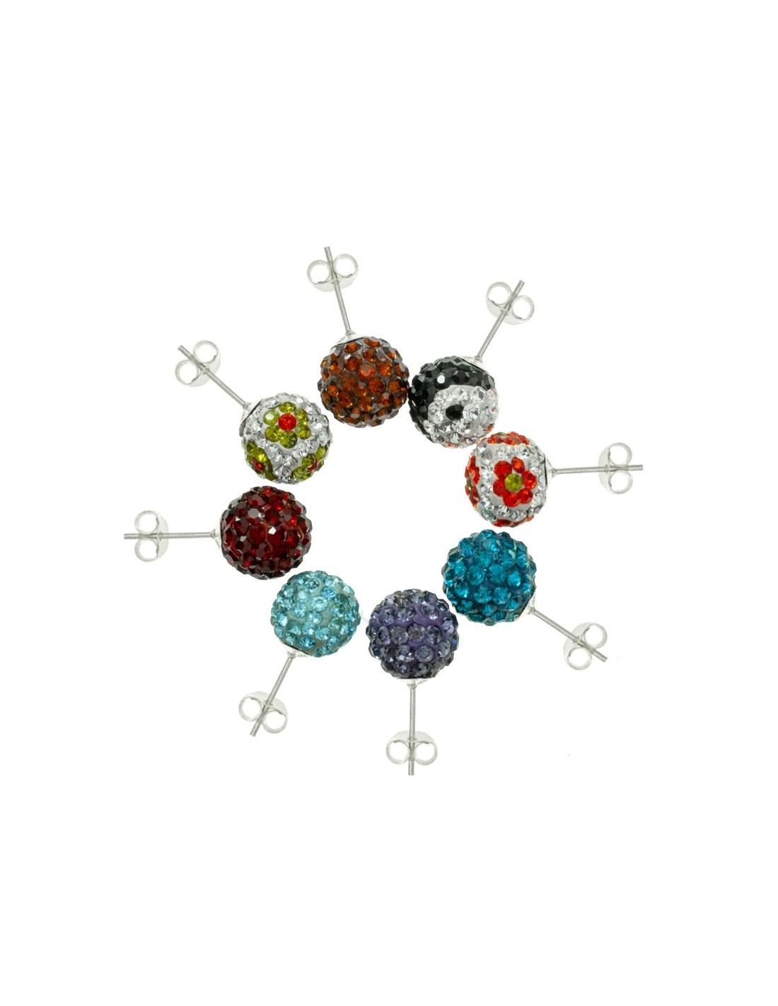 Lote 8 pares pendientes brillo Plata de Ley