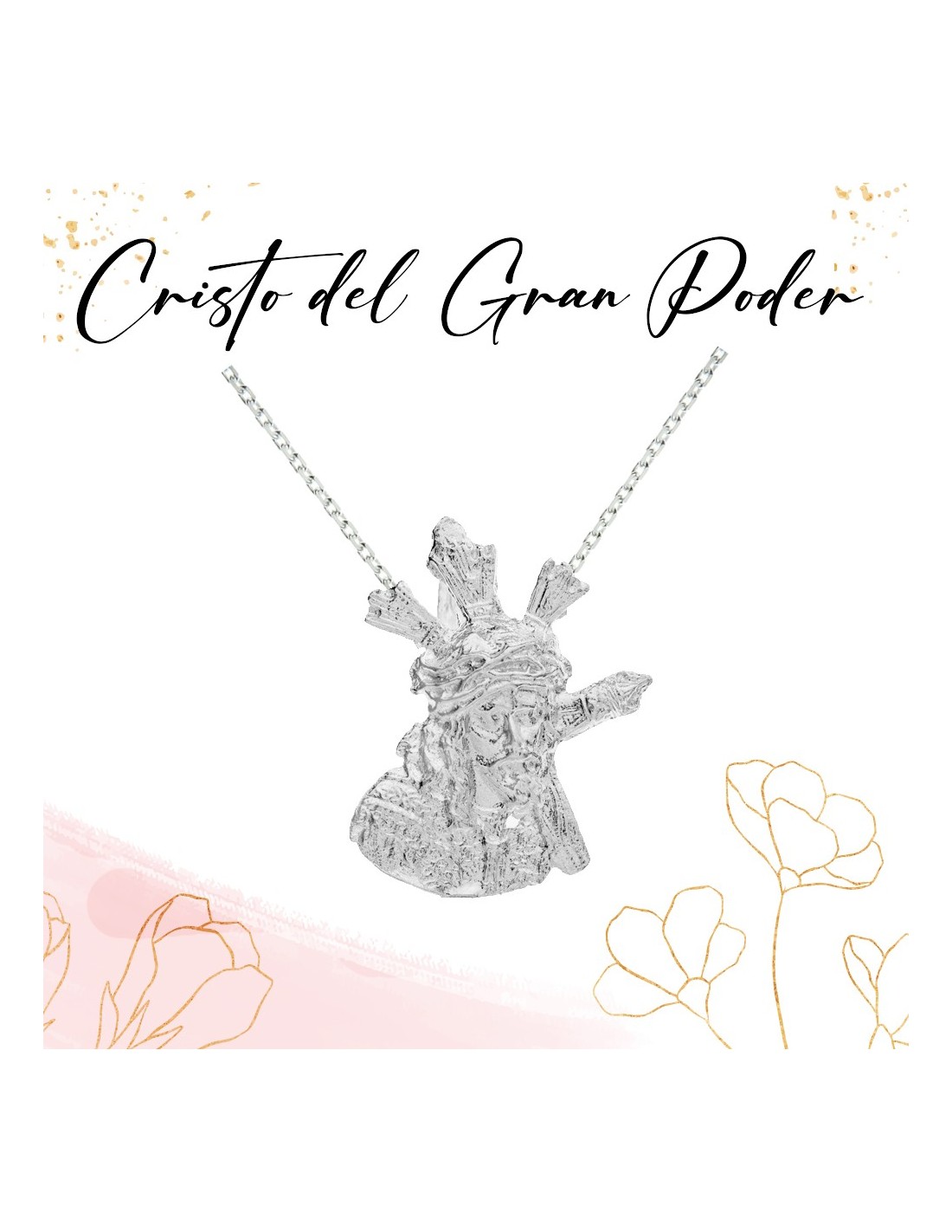 Medalla Cristo del Gran Poder fabricado en Plata de Ley. Incluye cadena de 45 0 50 cm.