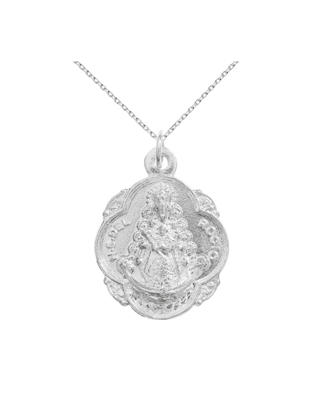 Medalla Virgen del Rocío de Plata de Ley con cadena de 45 cm.