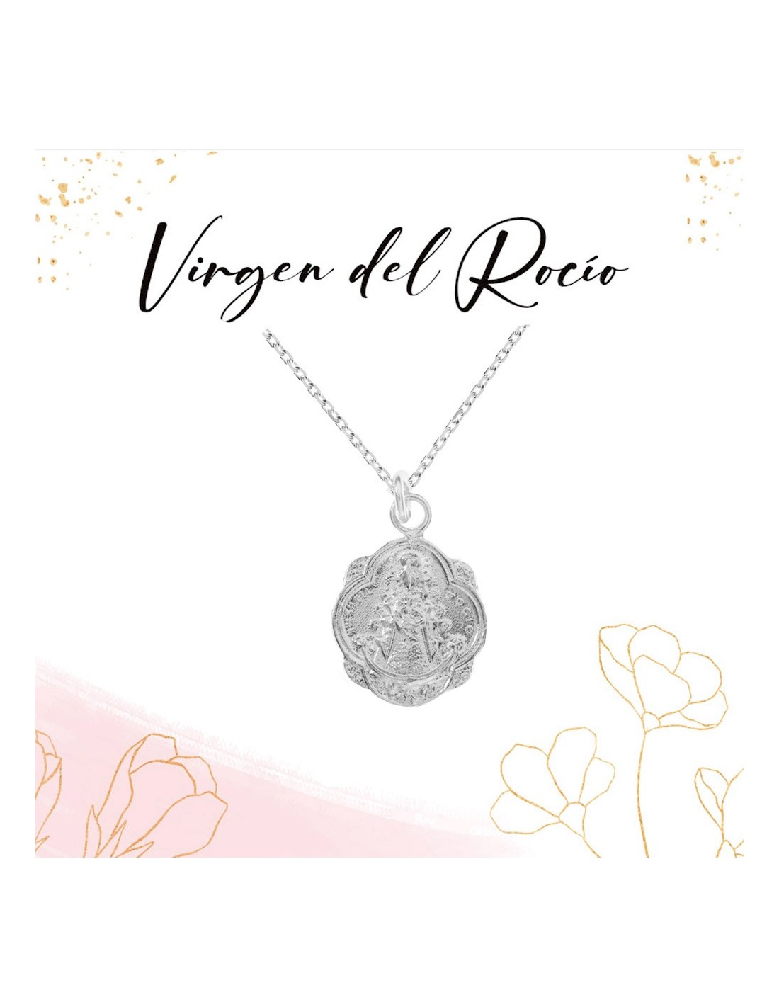 Medalla Virgen del Rocío fabricada en Plata de 1ª Ley. Cadena de 45 cm incluida