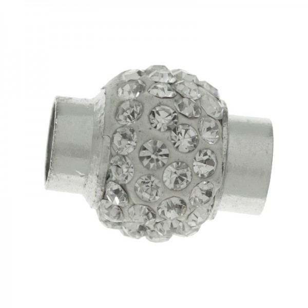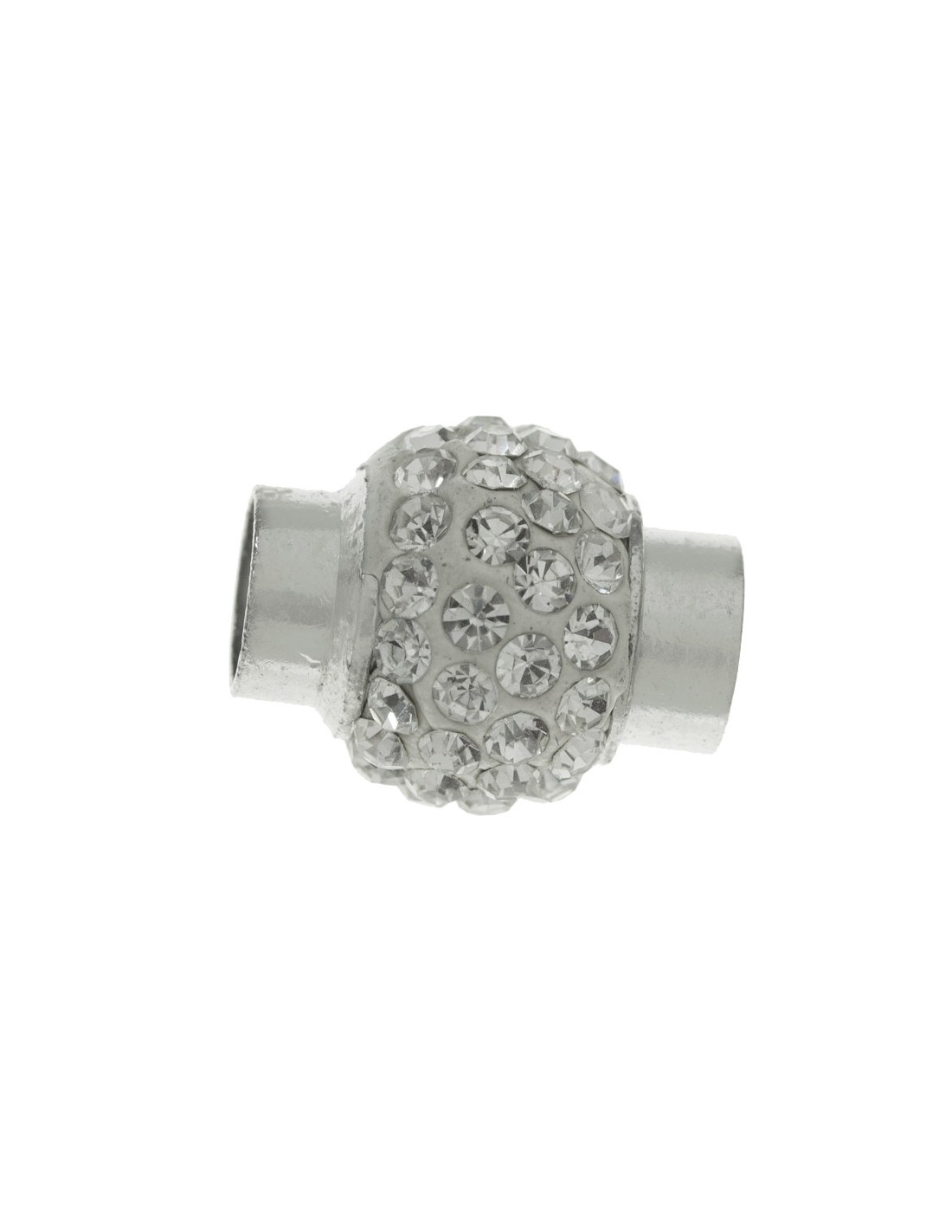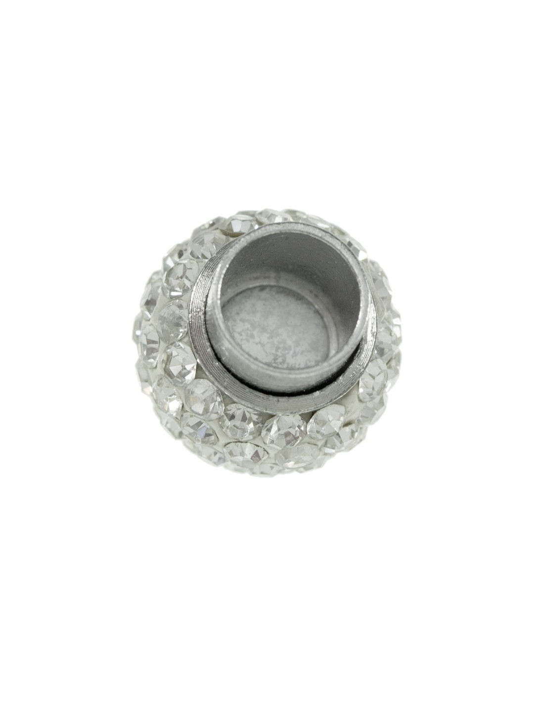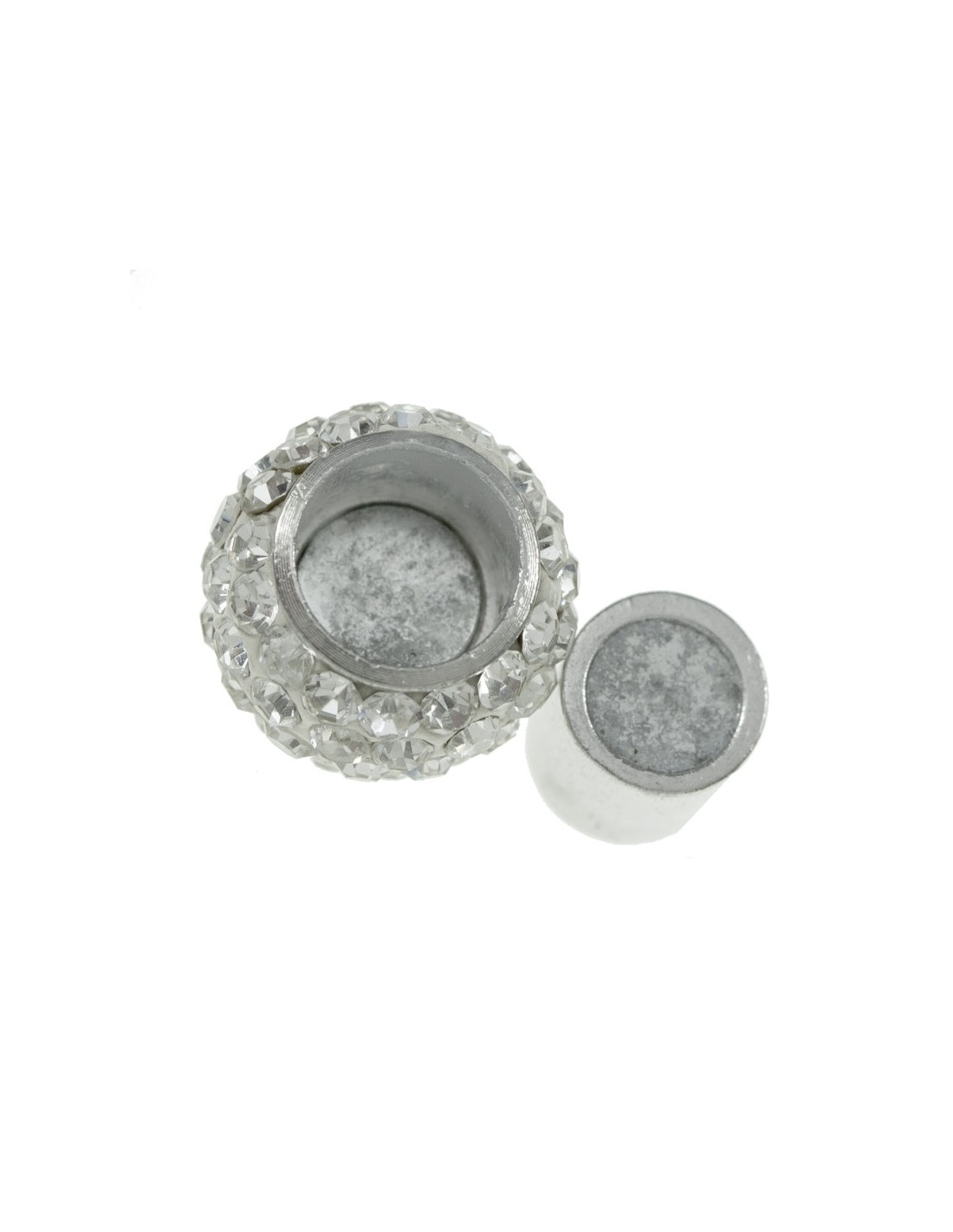 Cierre imán de bisutería bola strass blanco con terminal para cordón