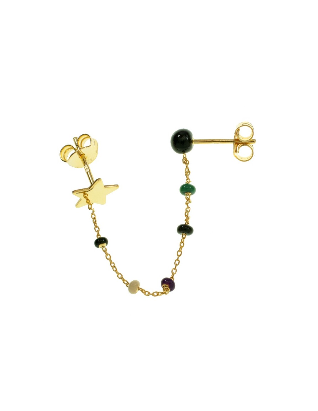 Pendiente doble con cadena de bolitas esmaltadas fabricado en Plata de Ley bañada en Oro