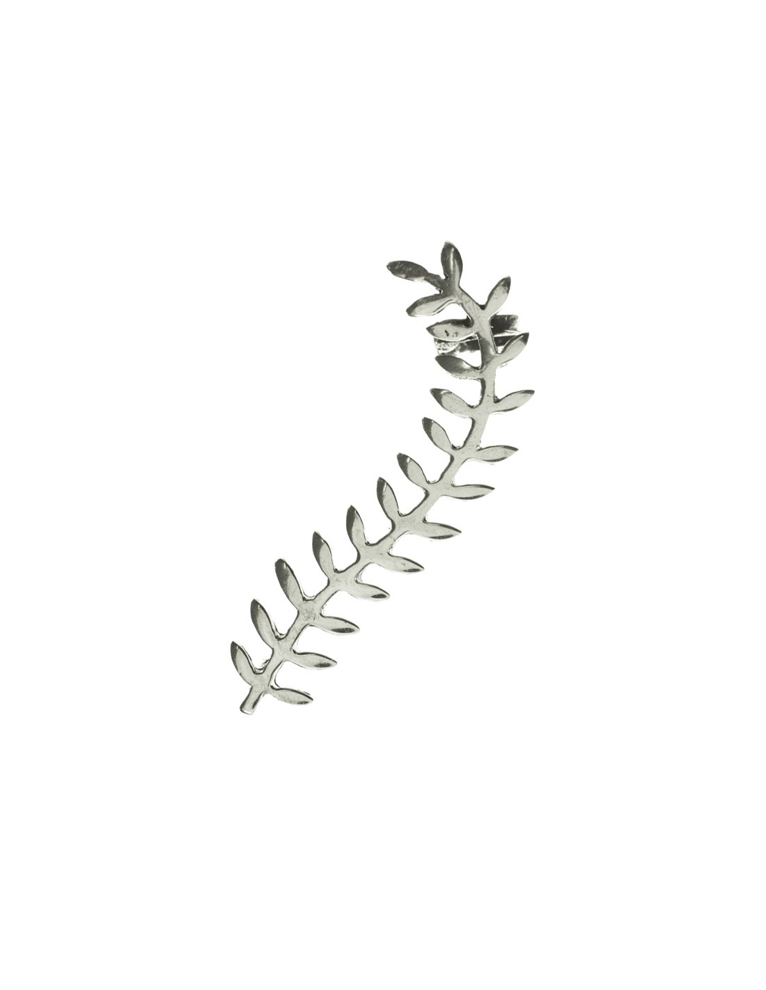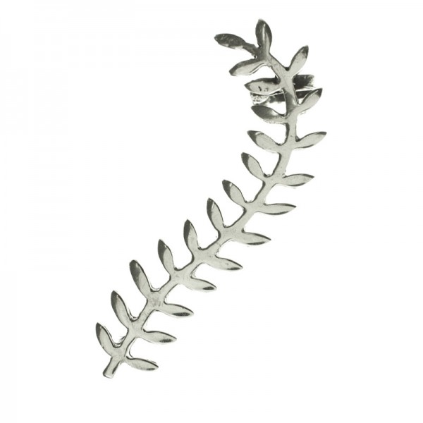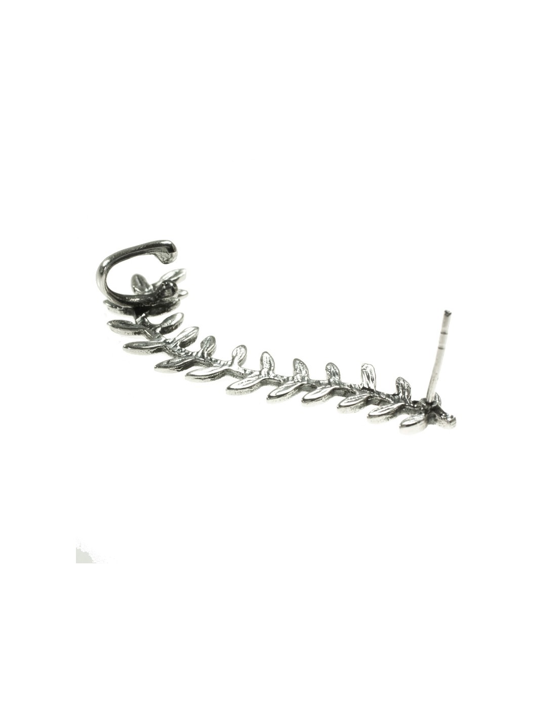 Pendiente gran trepador diseño laurel, fabricados en Plata de Ley 925 con cierre mariposa, sujeción al cartílago superior.