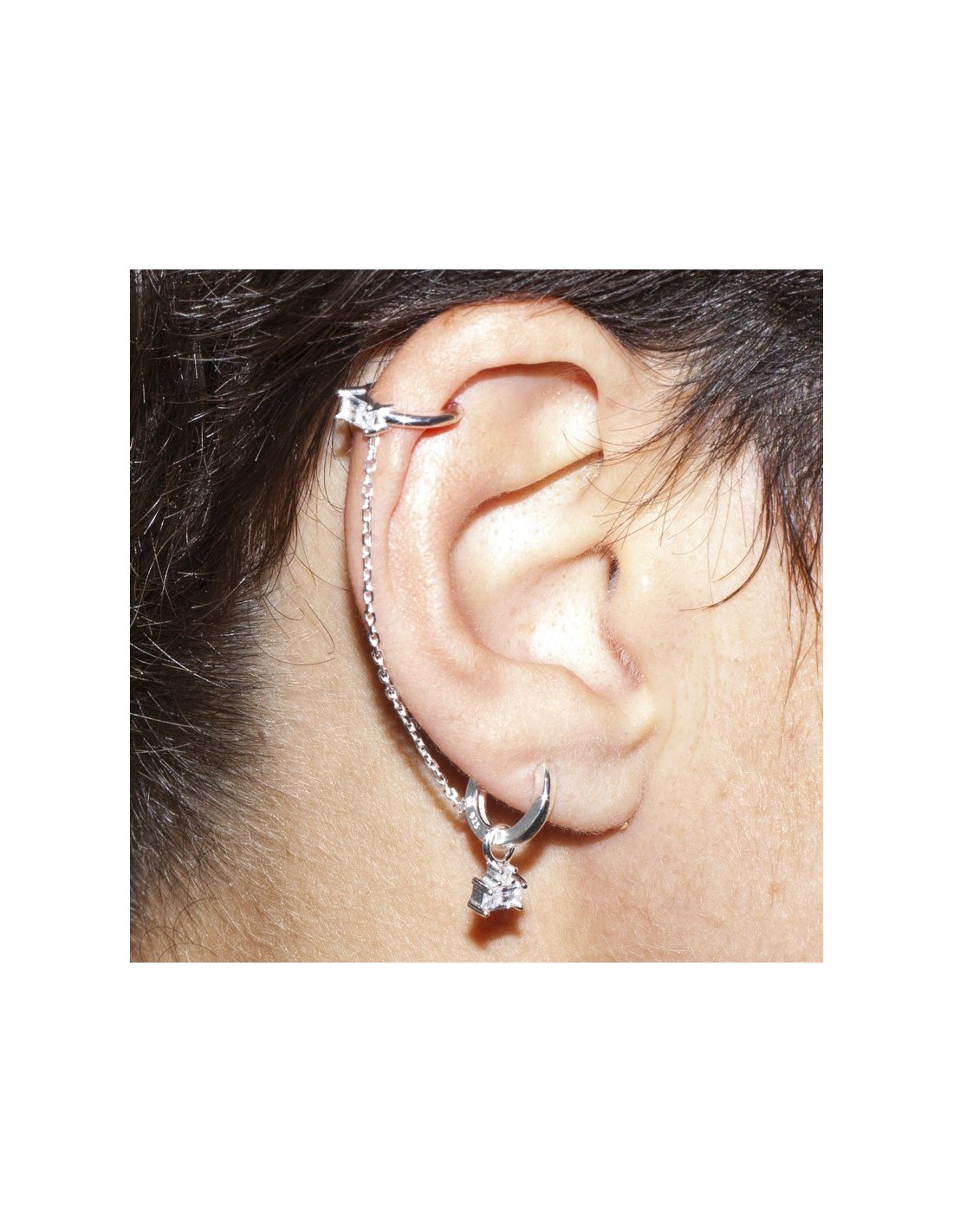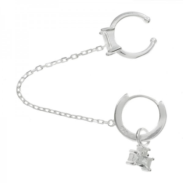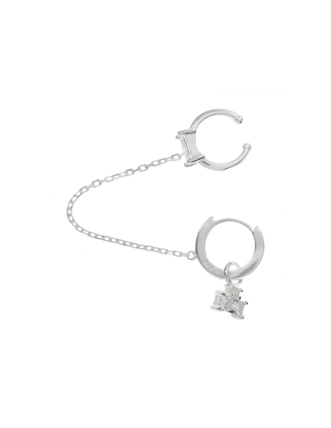 Pendiente individual doble con cadena Plata de Ley