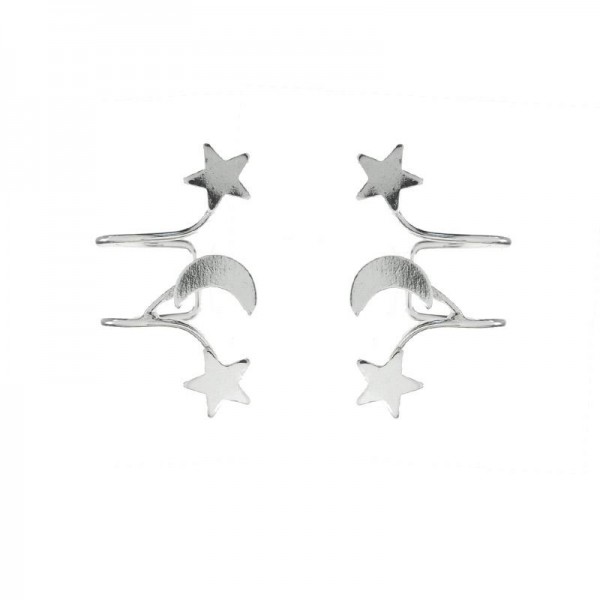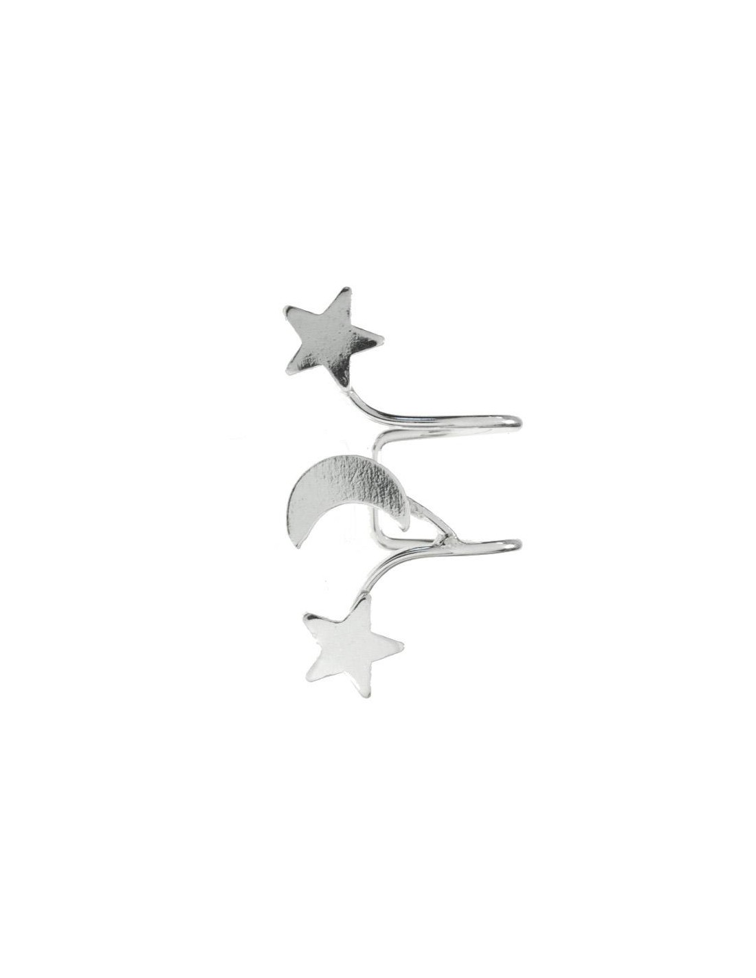 Pendiente para cartilago diseño luna y estrellas Plata de Ley 925