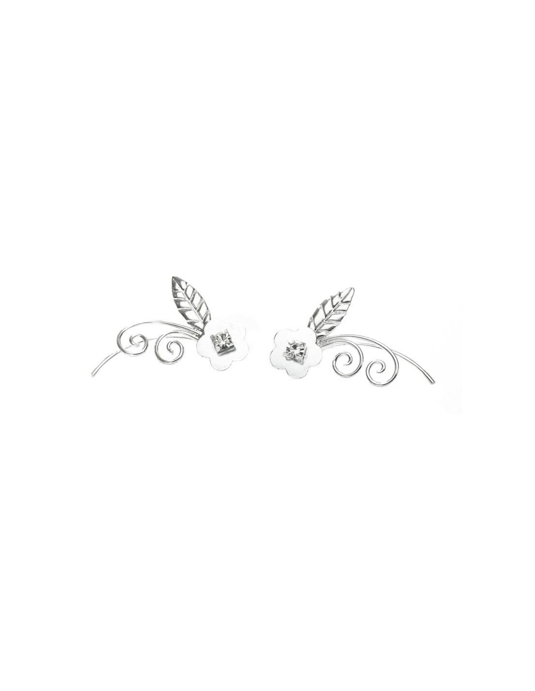 Originales pendientes trepadores flor con circonita y espirales fabricados en Plata lisa de Ley 925.