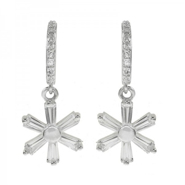 Pendientes aro abierto con flor Plata de Ley
