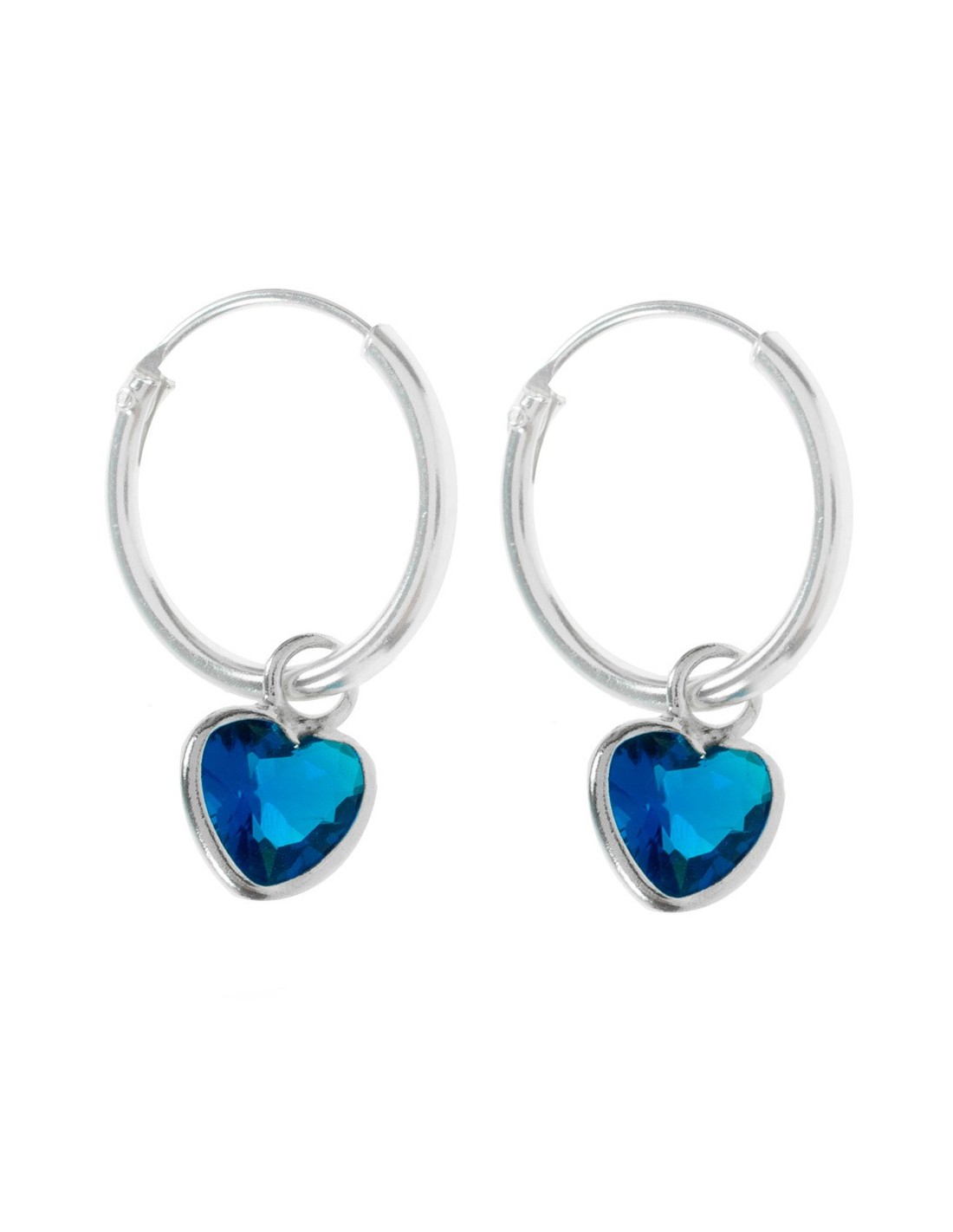 Pendientes aro corazón de cristal Plata de Ley
