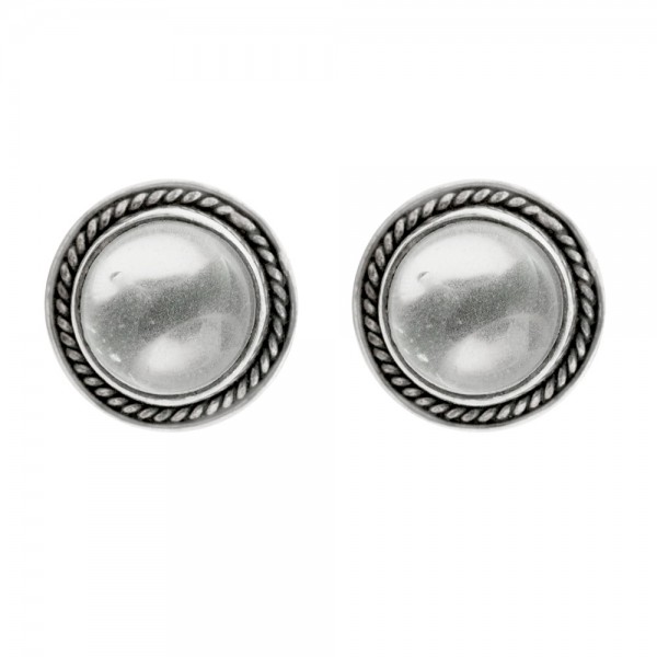 Pendientes botón cuarzo blanco fabricados en Plata de 1ª Ley 925.