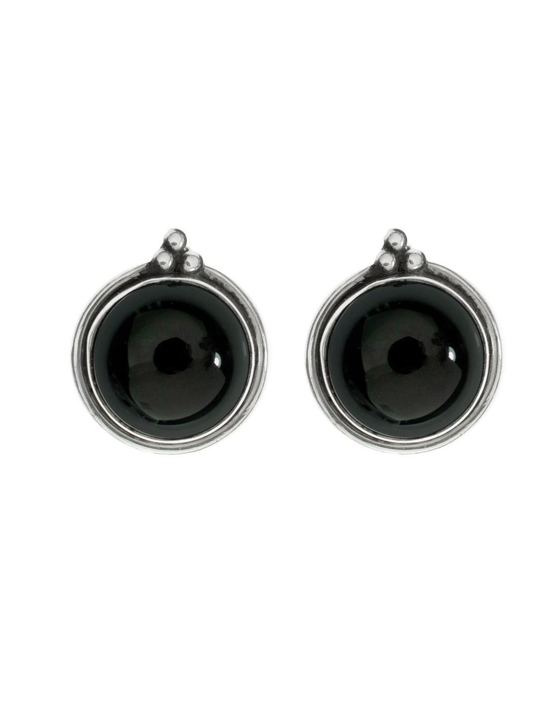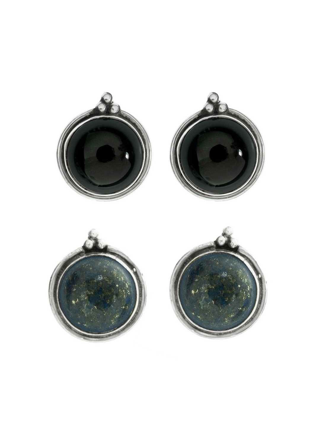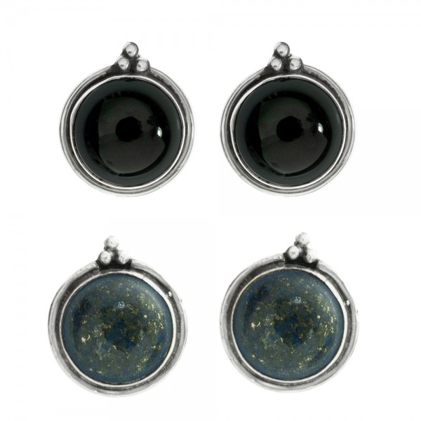 Pendientes botón ónix o lapislázuli redondo con base étnica fabricados en Plata de 1ª Ley 925.