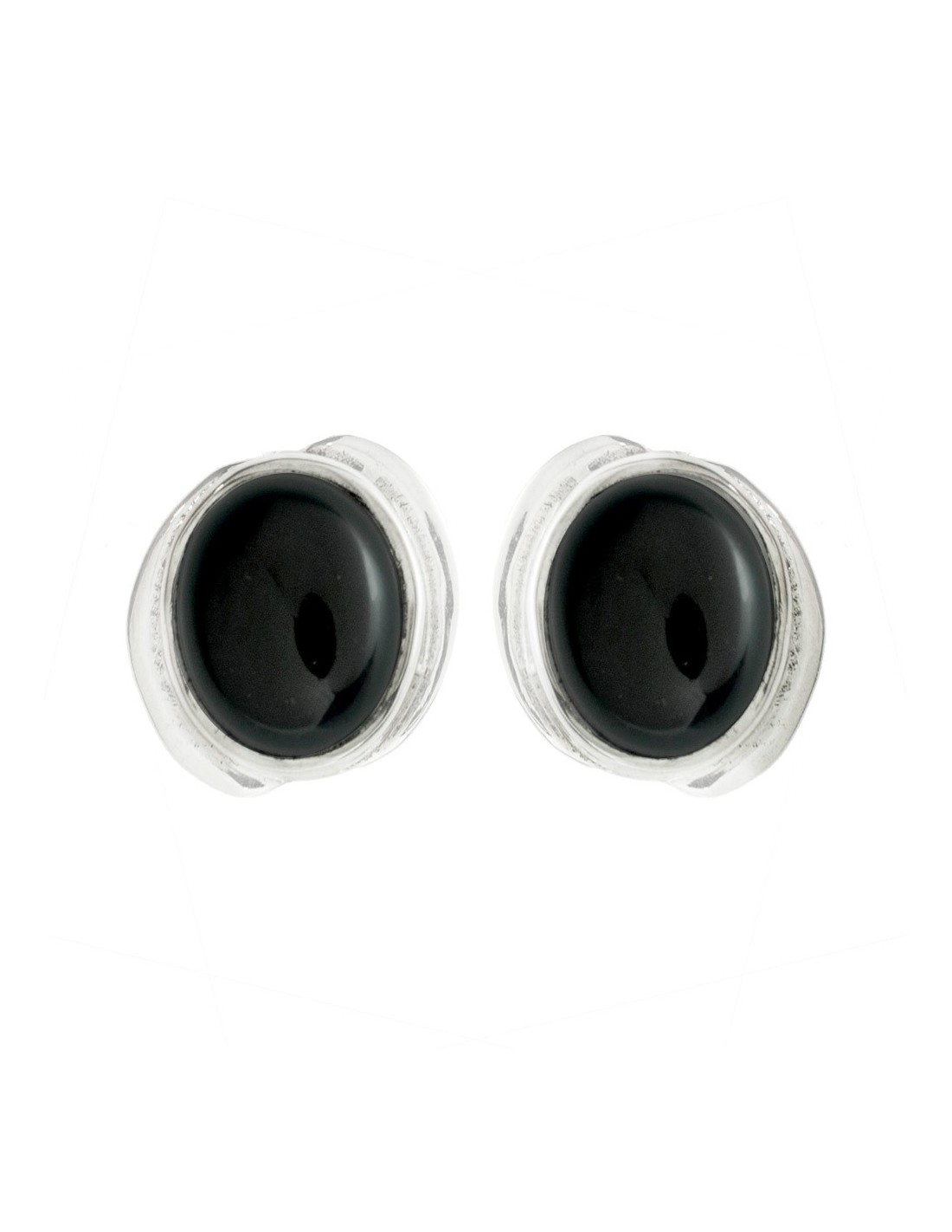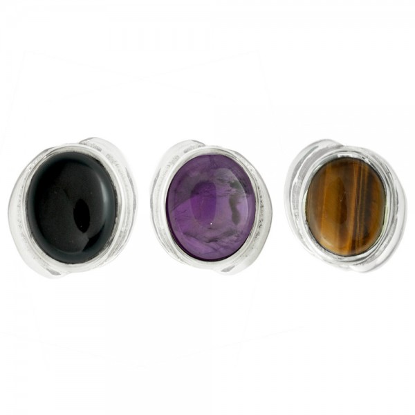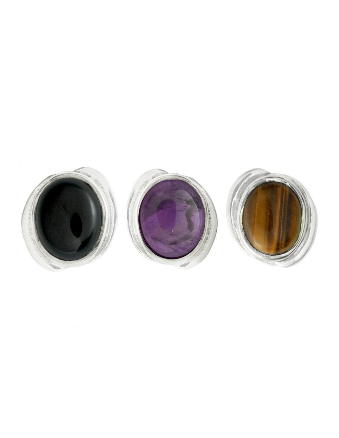 Pendientes botón piedra oval disponibles con ojo de tigre, amatista y ónix fabricados en Plata de 1ª Ley 925.