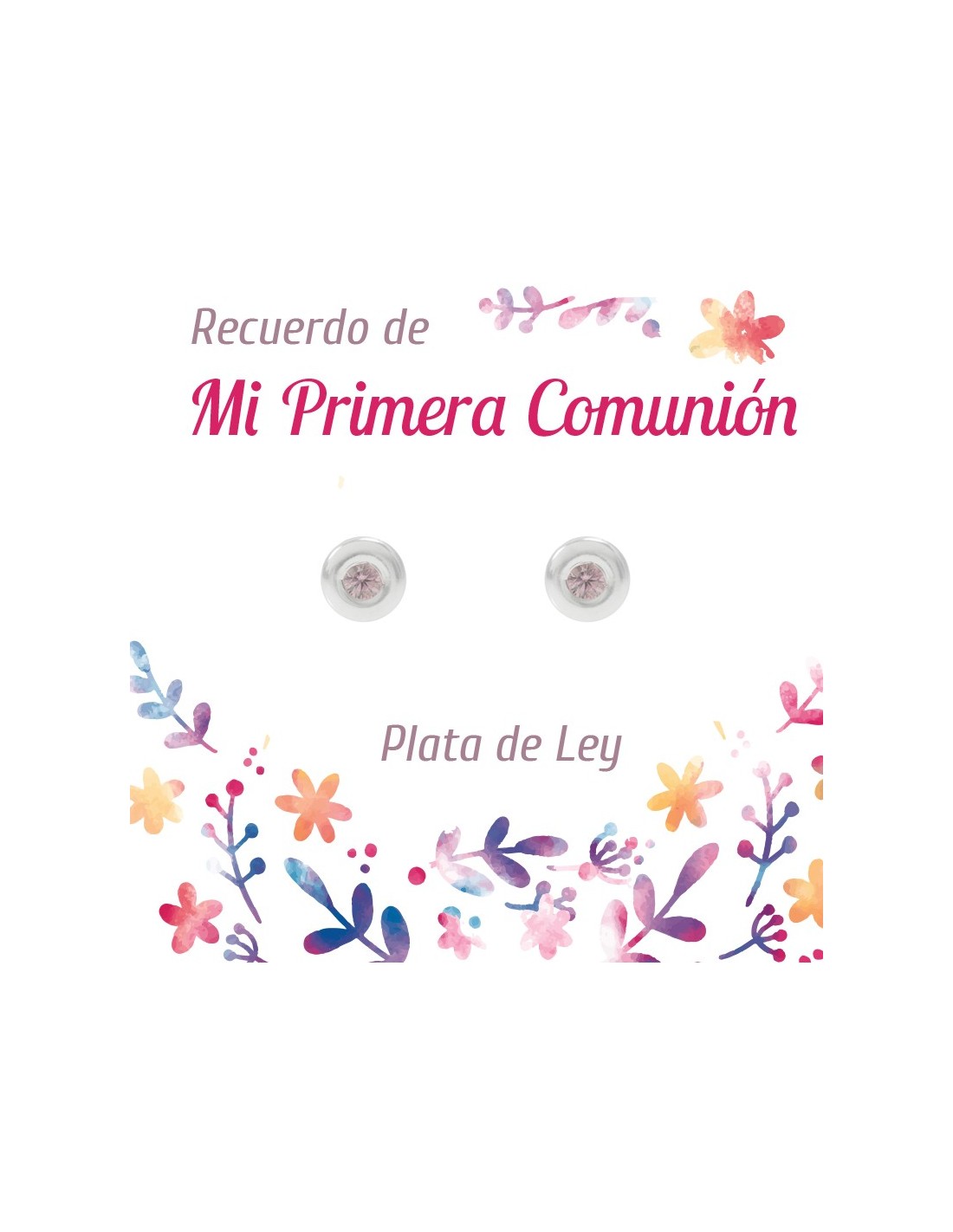 Pendientes circonita rosa para niña de Primera Comunión- Karissma