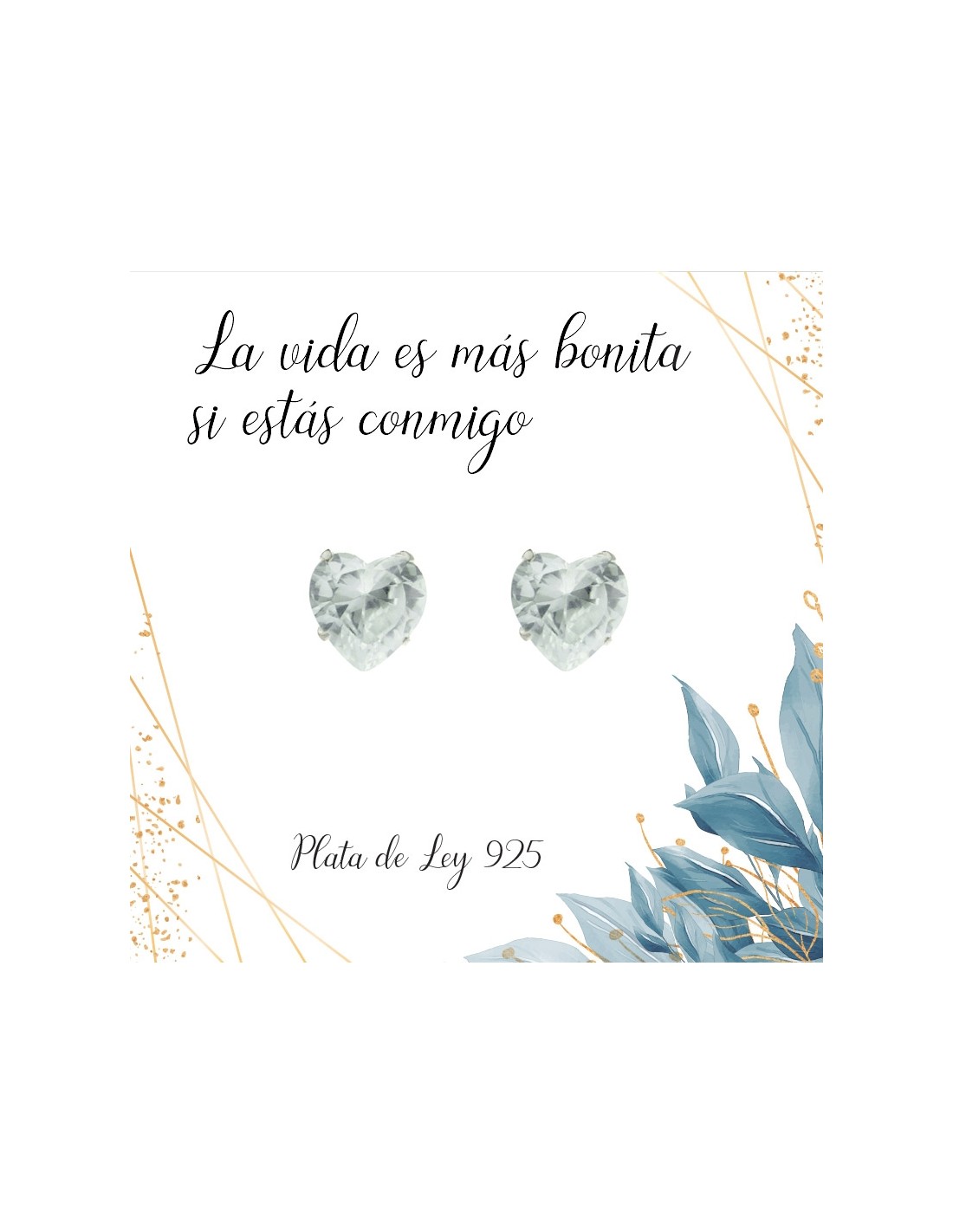 Pendientes Corazón circonita blanca especial San Valentín con base de Plata de Ley 925