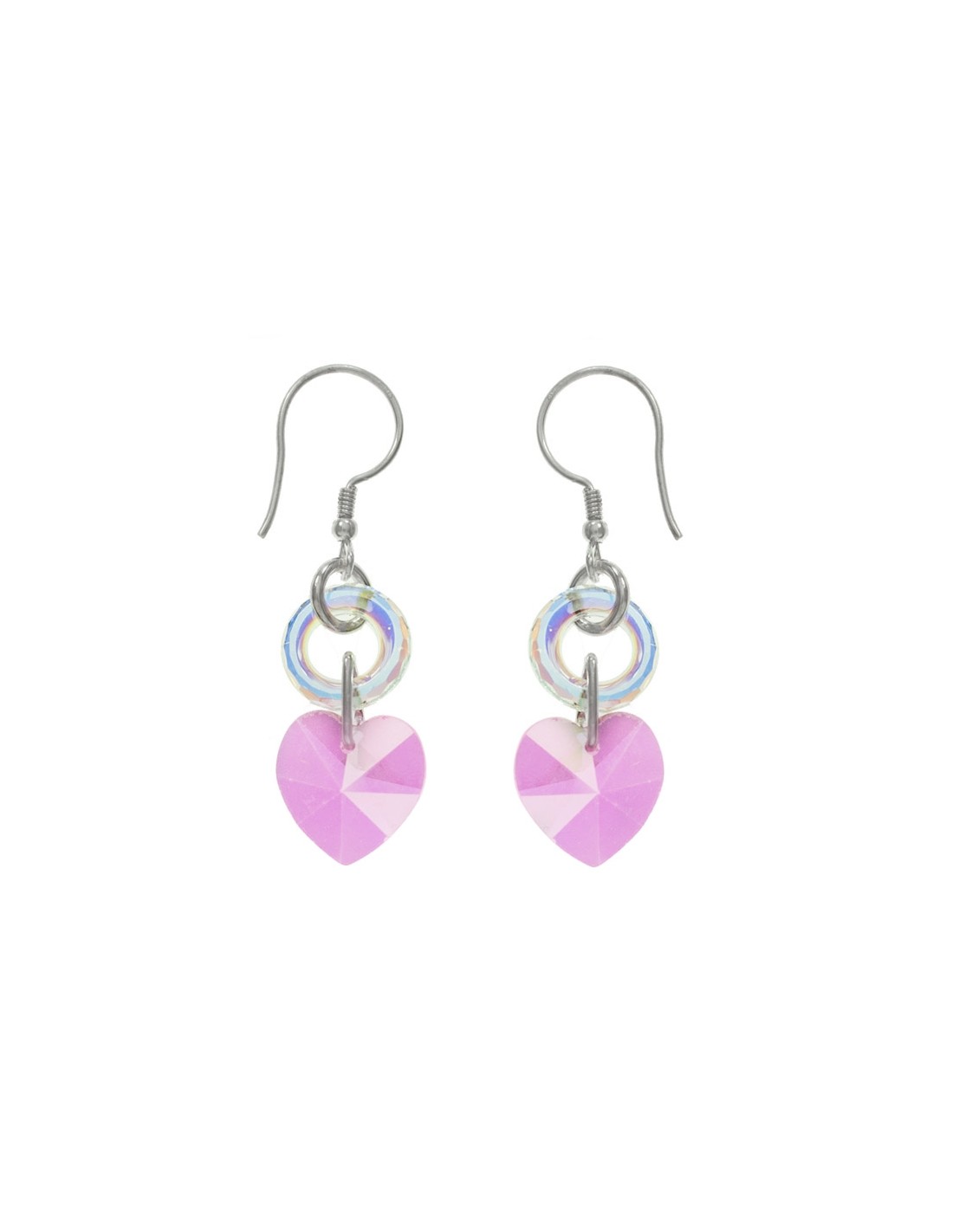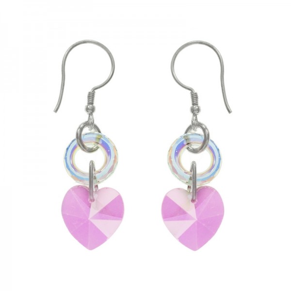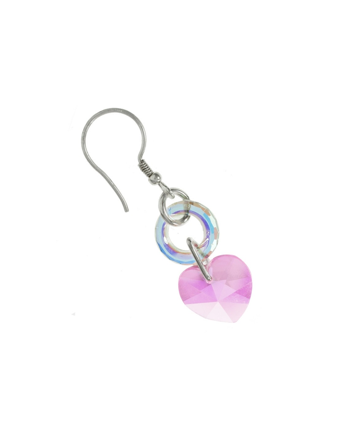 Pendientes corazón cristal con donut swarovski color rosa Plata de Ley