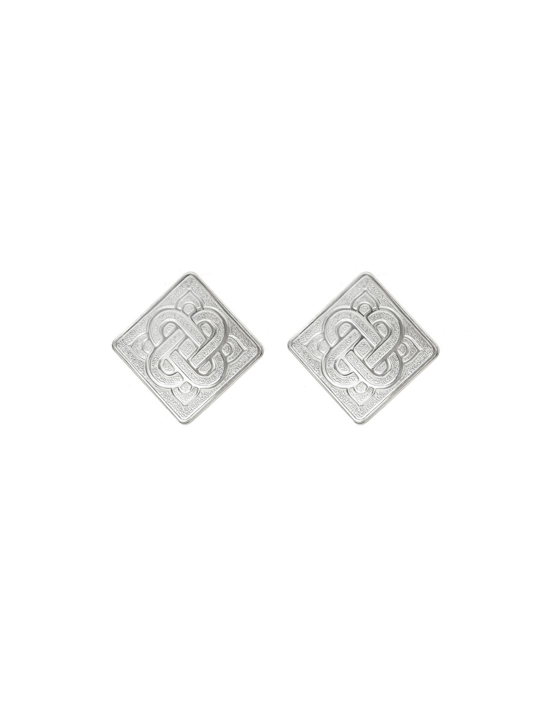 Pendientes cuadrados cierre catalán Plata de Ley con símbolo entrelazado