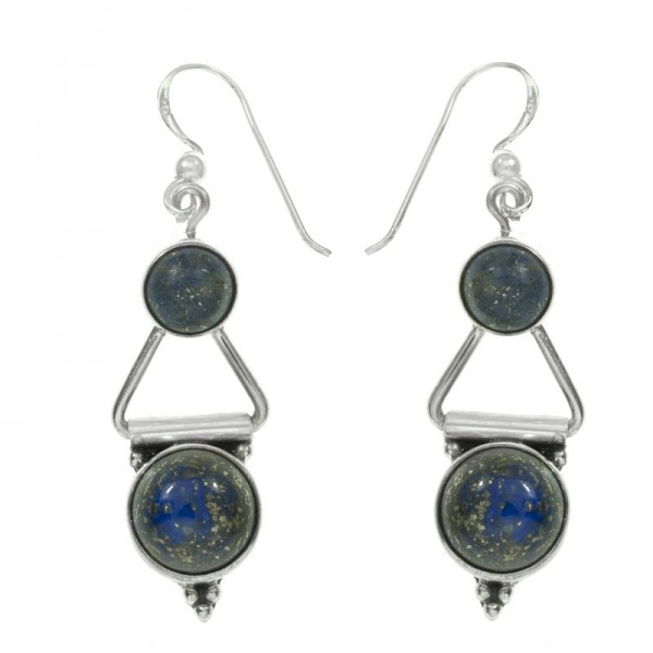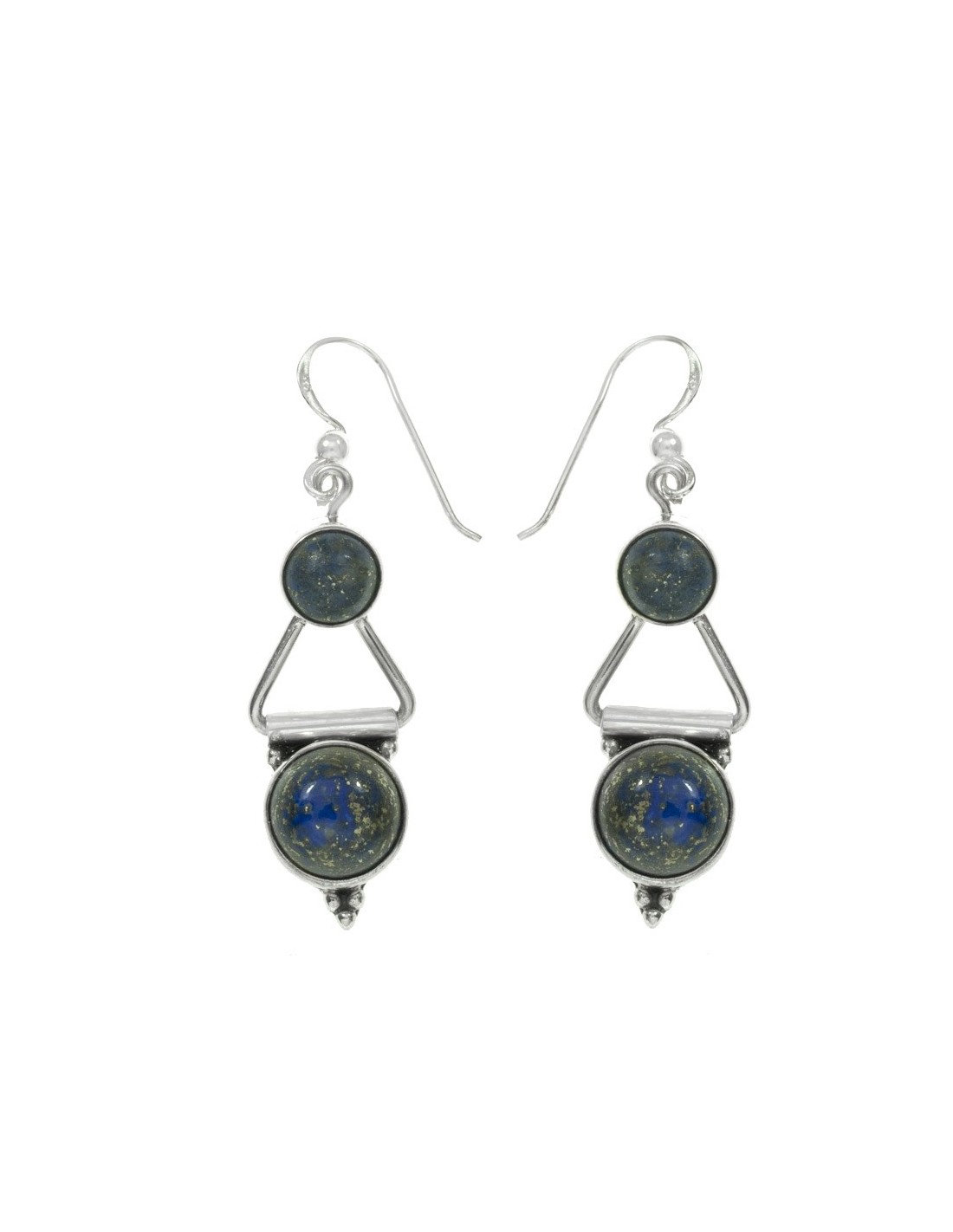 Pendientes largos con base estrellada de estilo étnico con centro esmaltado y colgante de pluma de plata vieja. Fabricados en Plata de Ley 925.