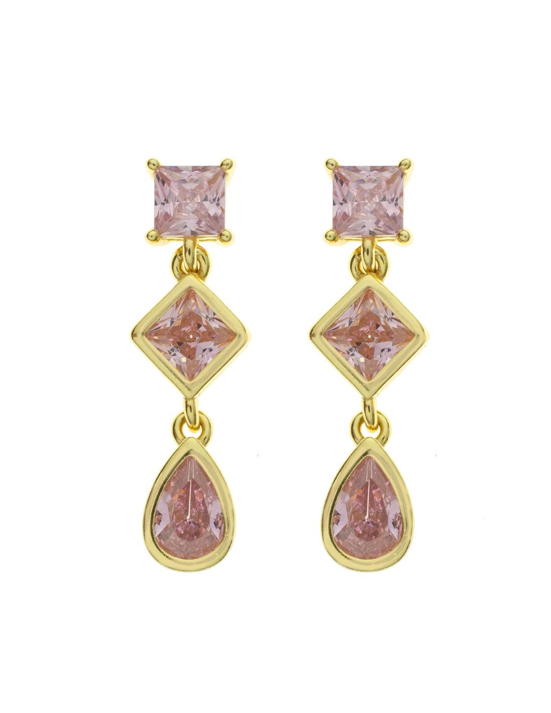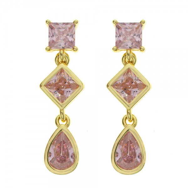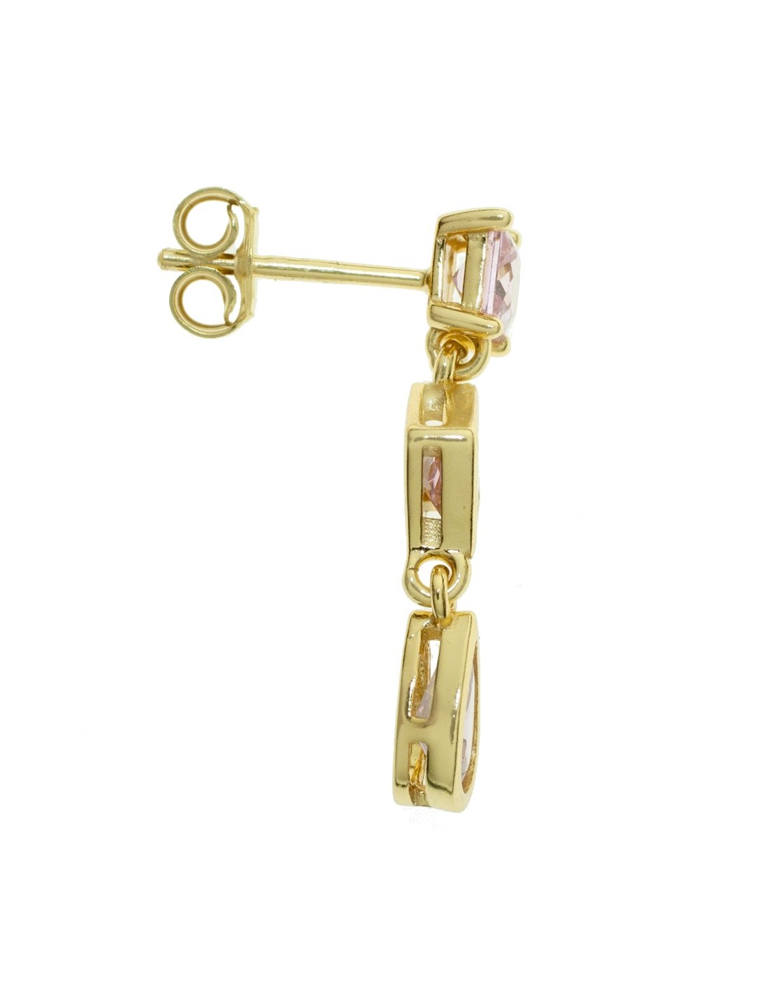 Pendientes largos dorados circonitas color rosa Plata de Ley
