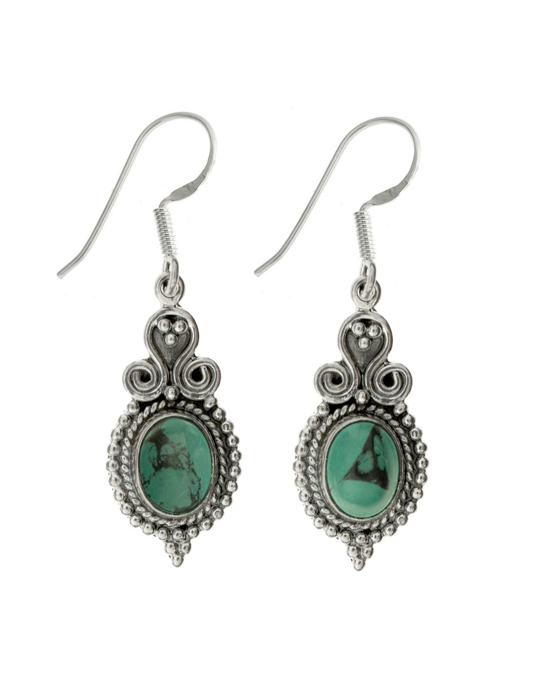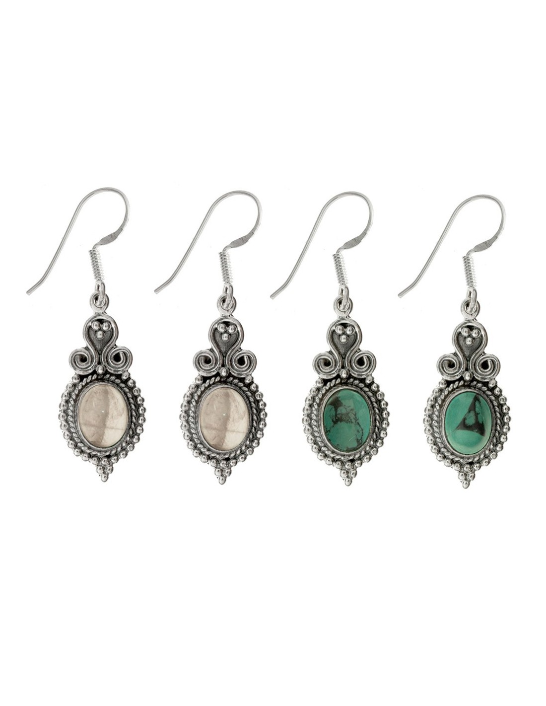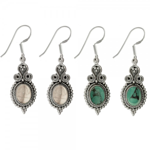 Pendientes espirales con piedra oval Plata de Ley