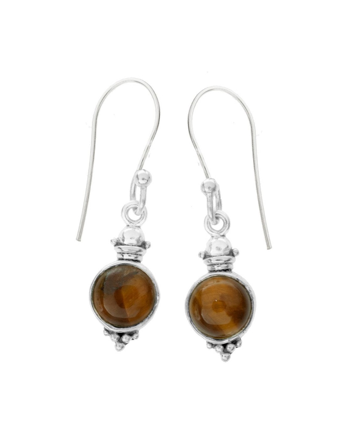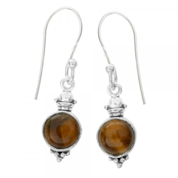 Pendientes étnicos ojo de tigre fabricados en Plata de Ley 925.