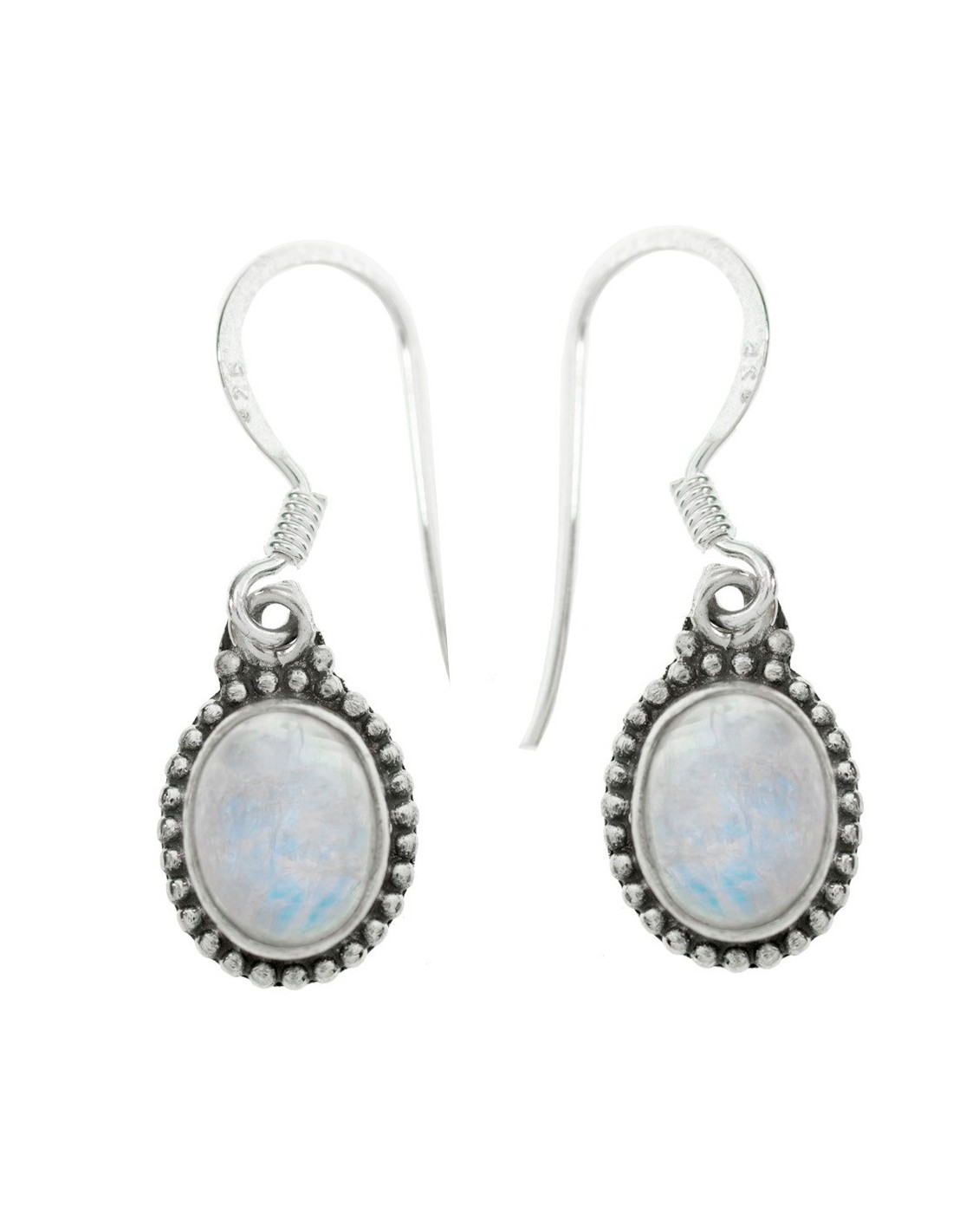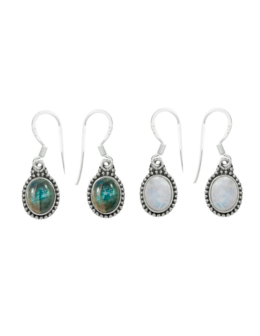 Pendientes étnicos piedra natural oval Plata de Ley