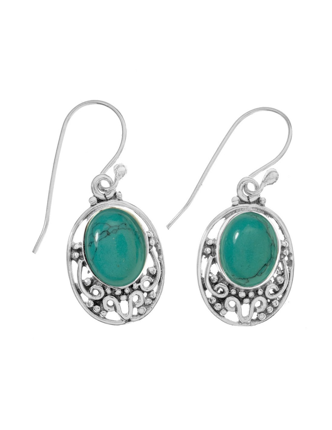 Pendientes étnicos con piedra oval fabricados en Plata de Ley.