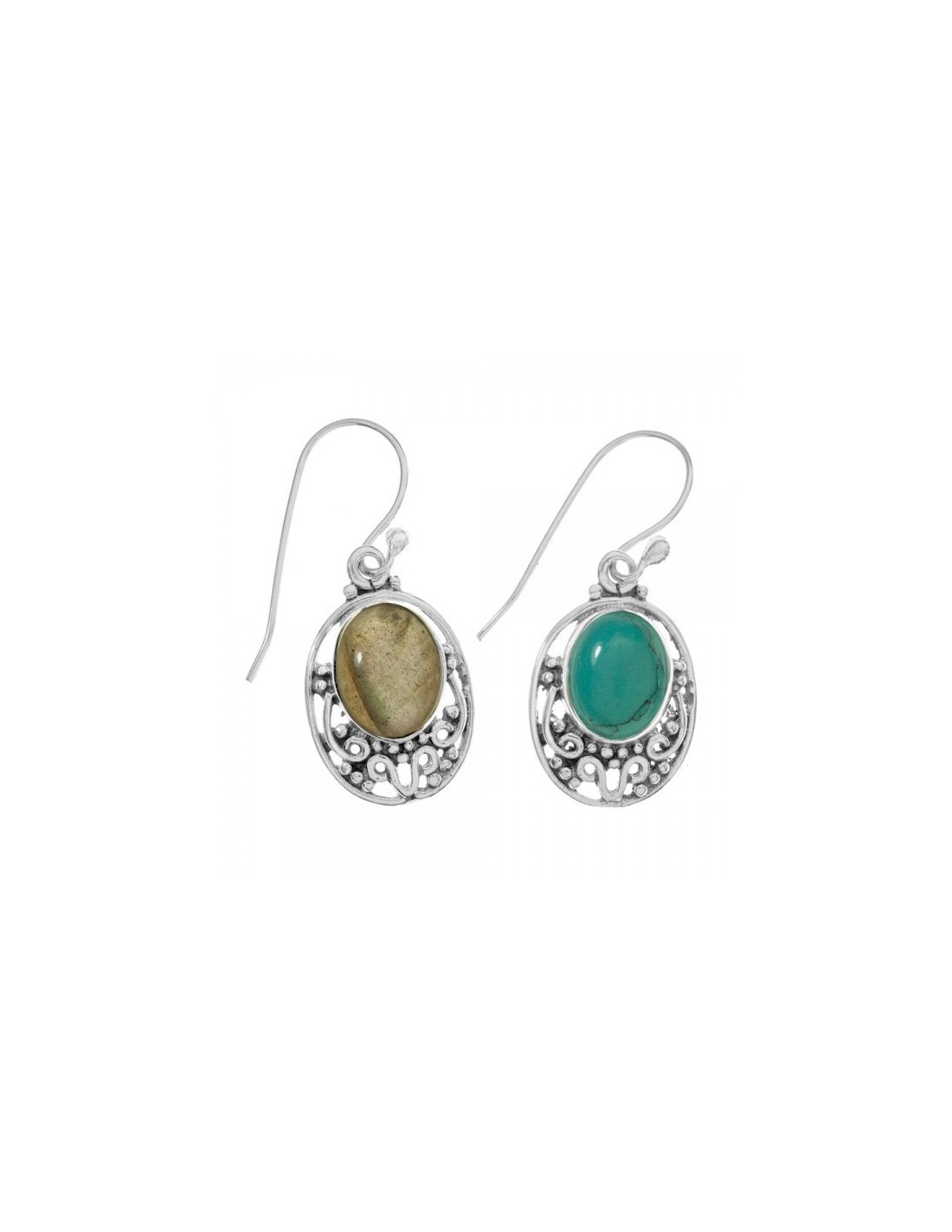 Pendientes étnicos piedra oval Plata de Ley - Karissma
