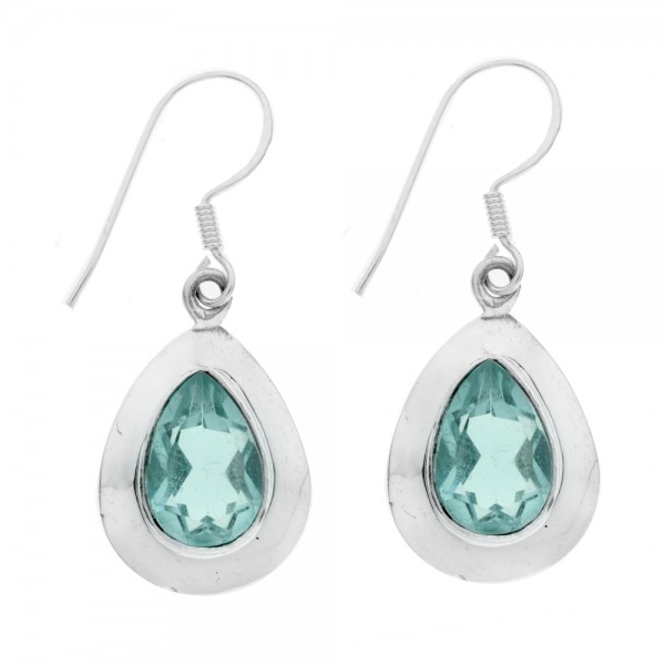 Pendientes largos diseño gota de piedra aguamarina facetada fabricados en Plata de Ley