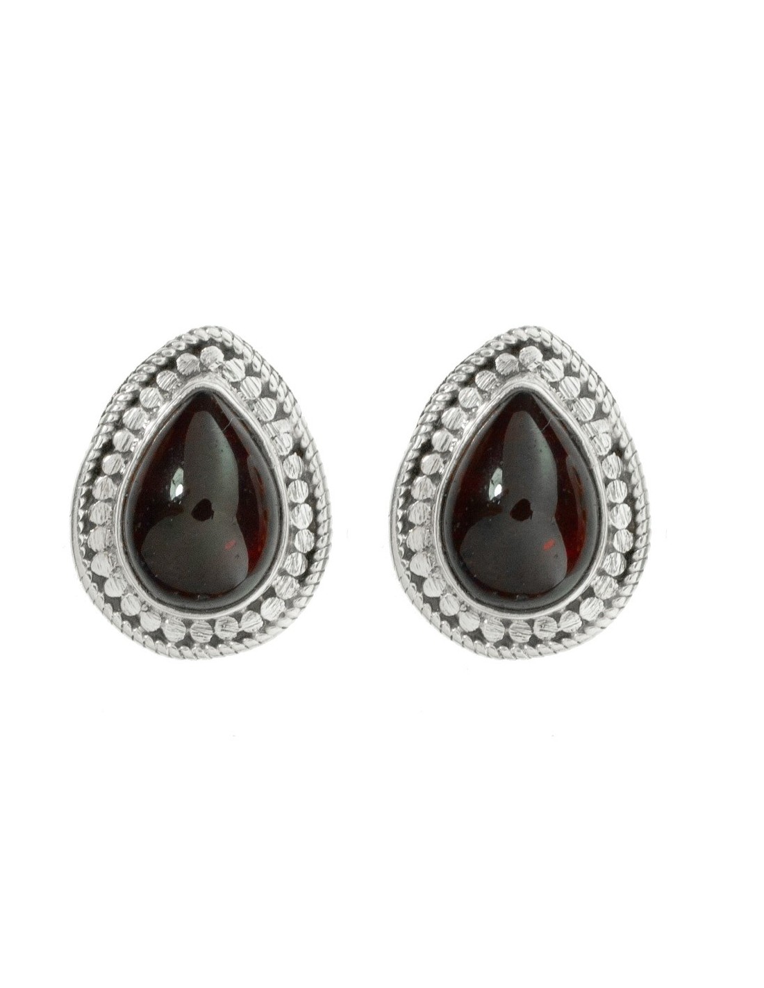Pendientes gota de granate con base punteada fabricados en Plata de 1ª Ley 925.