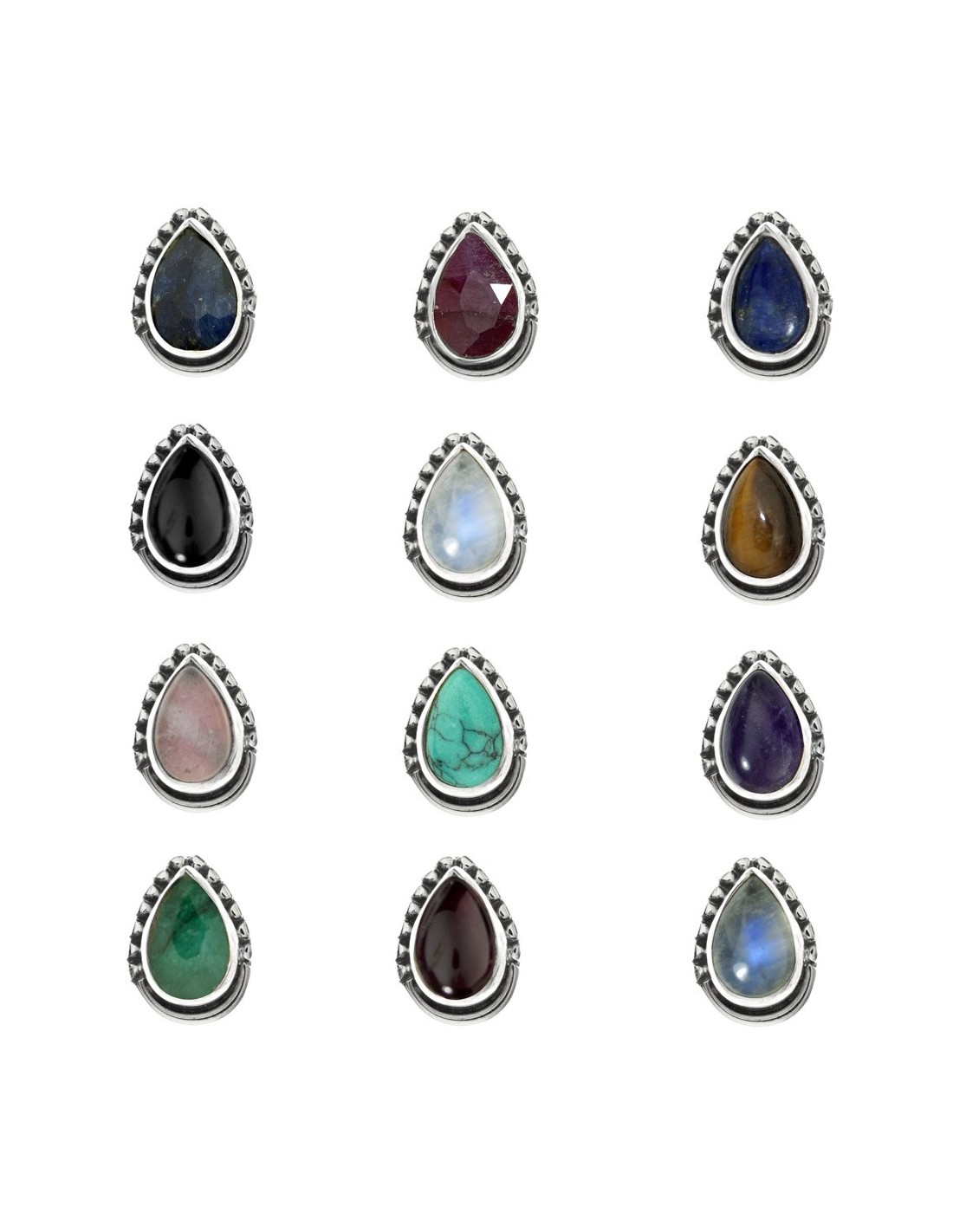 Pendientes gota mini piedra natural Plata de Ley