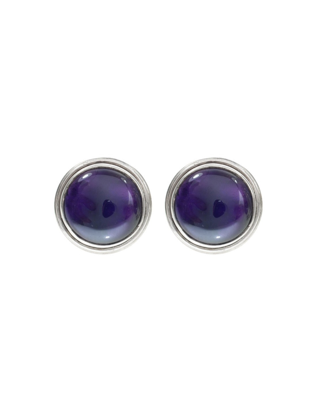 Pendientes con gran amatista semicircular con base sencilla de Plata de Ley 925 con acabado envejecido