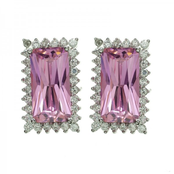 Pendientes gran circonita rosa Plata de Ley| Outlet joyas