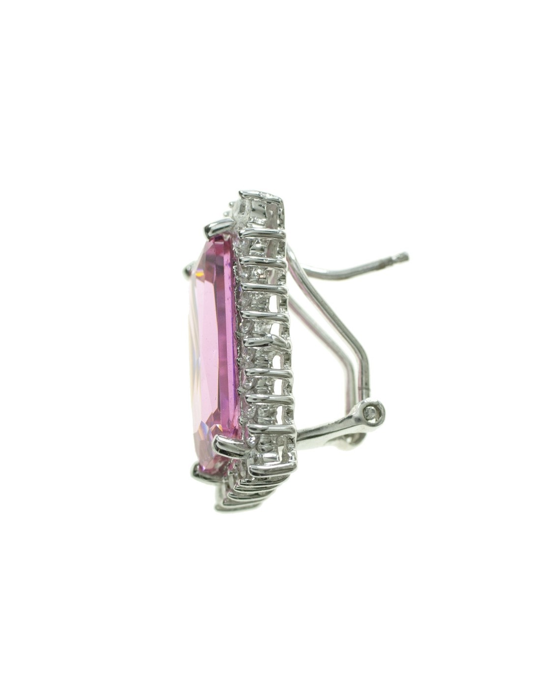 Pendientes gran circonita rosa Plata de Ley con cierre omega