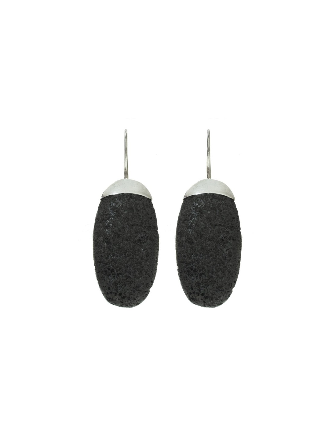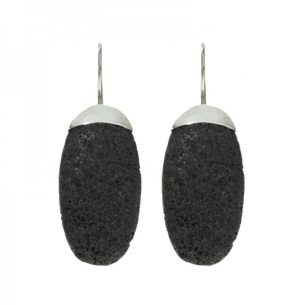 Pendientes gran óvalo de lava Plata de Ley