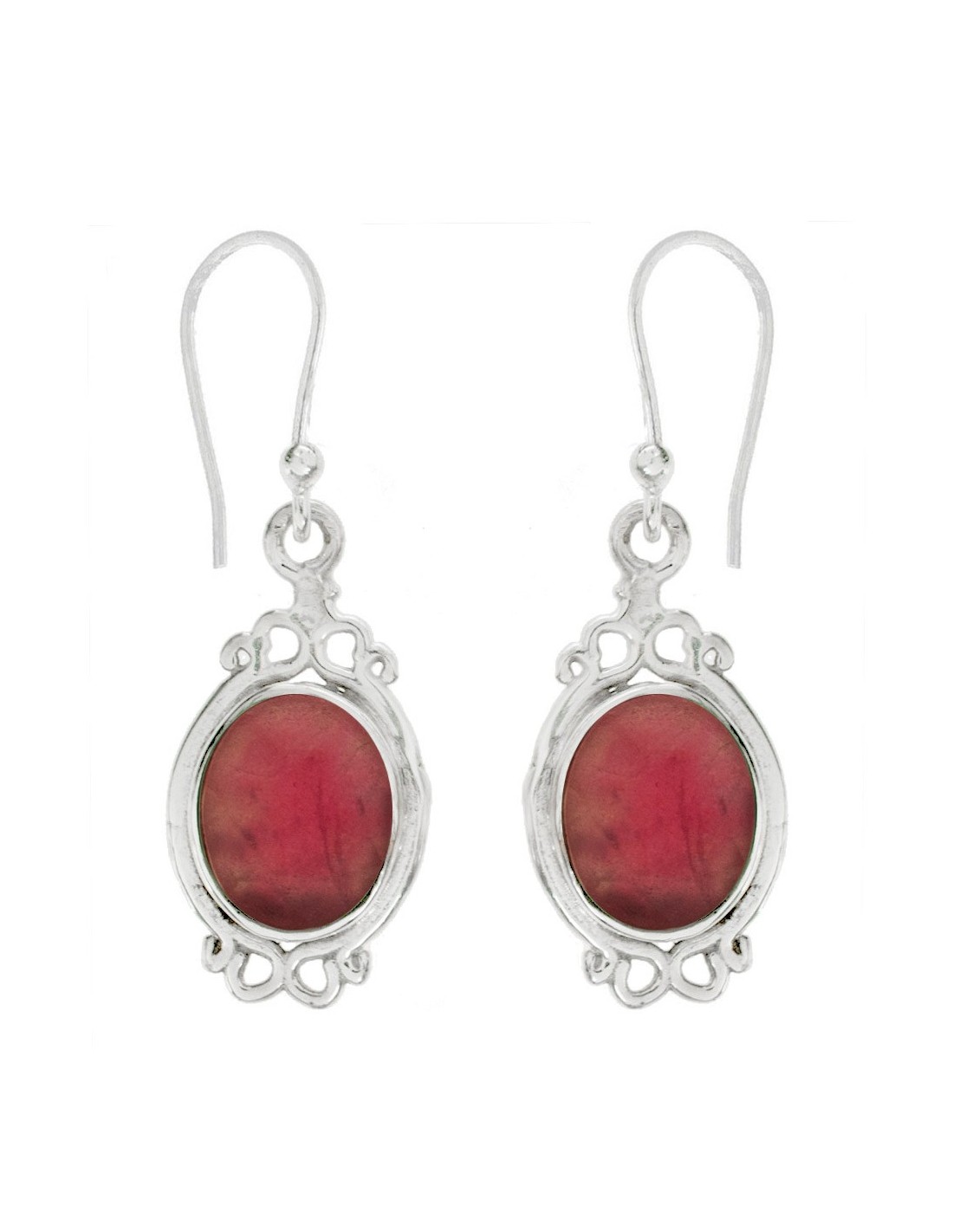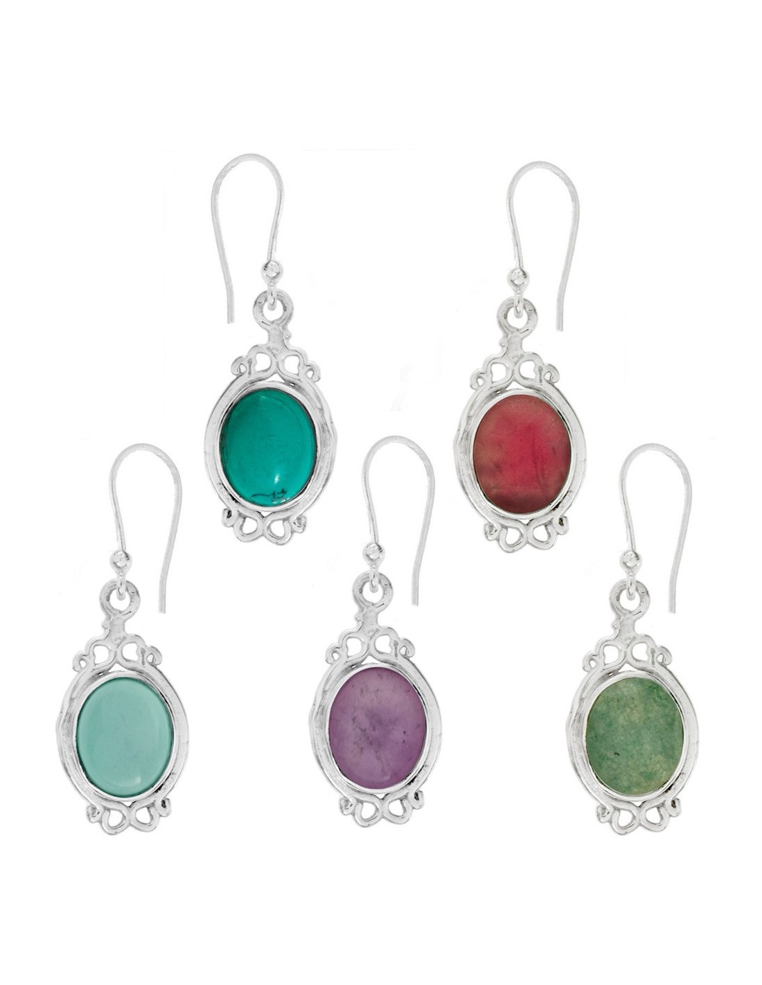 Pendientes largos base étnica con piedra oval fabricados en Plata de 1ª Ley 925 con gancho hippie.