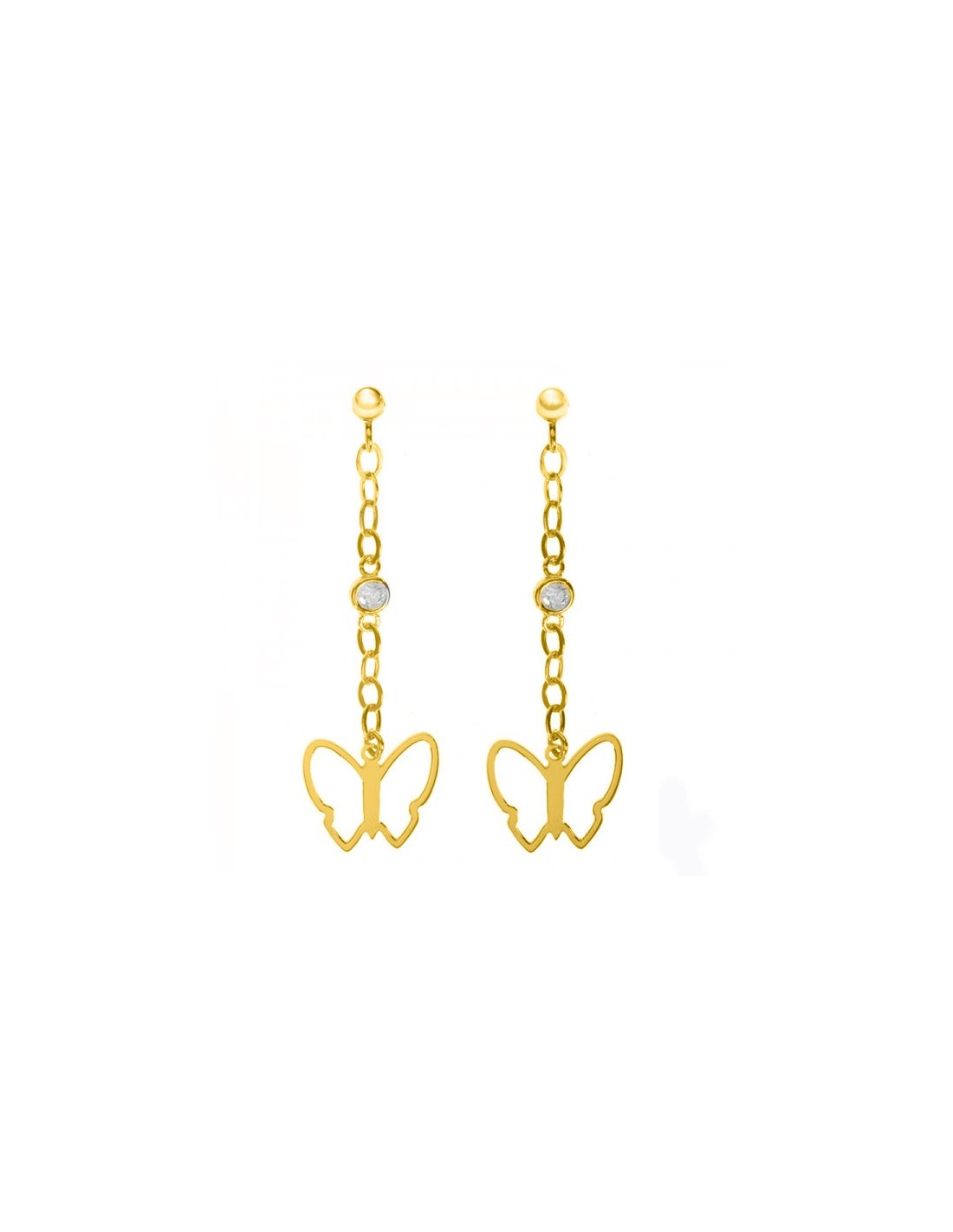 Pendientes largos cadena con mariposa fabricados en Plata de Ley 925.