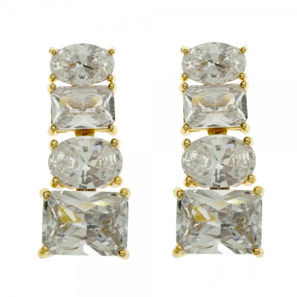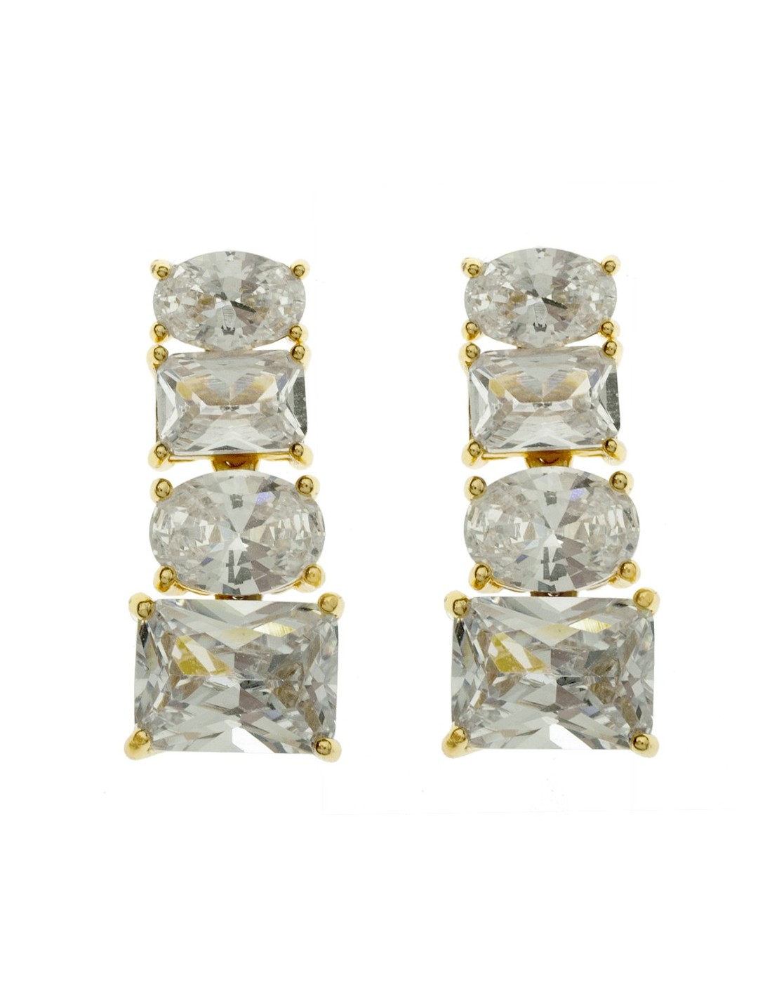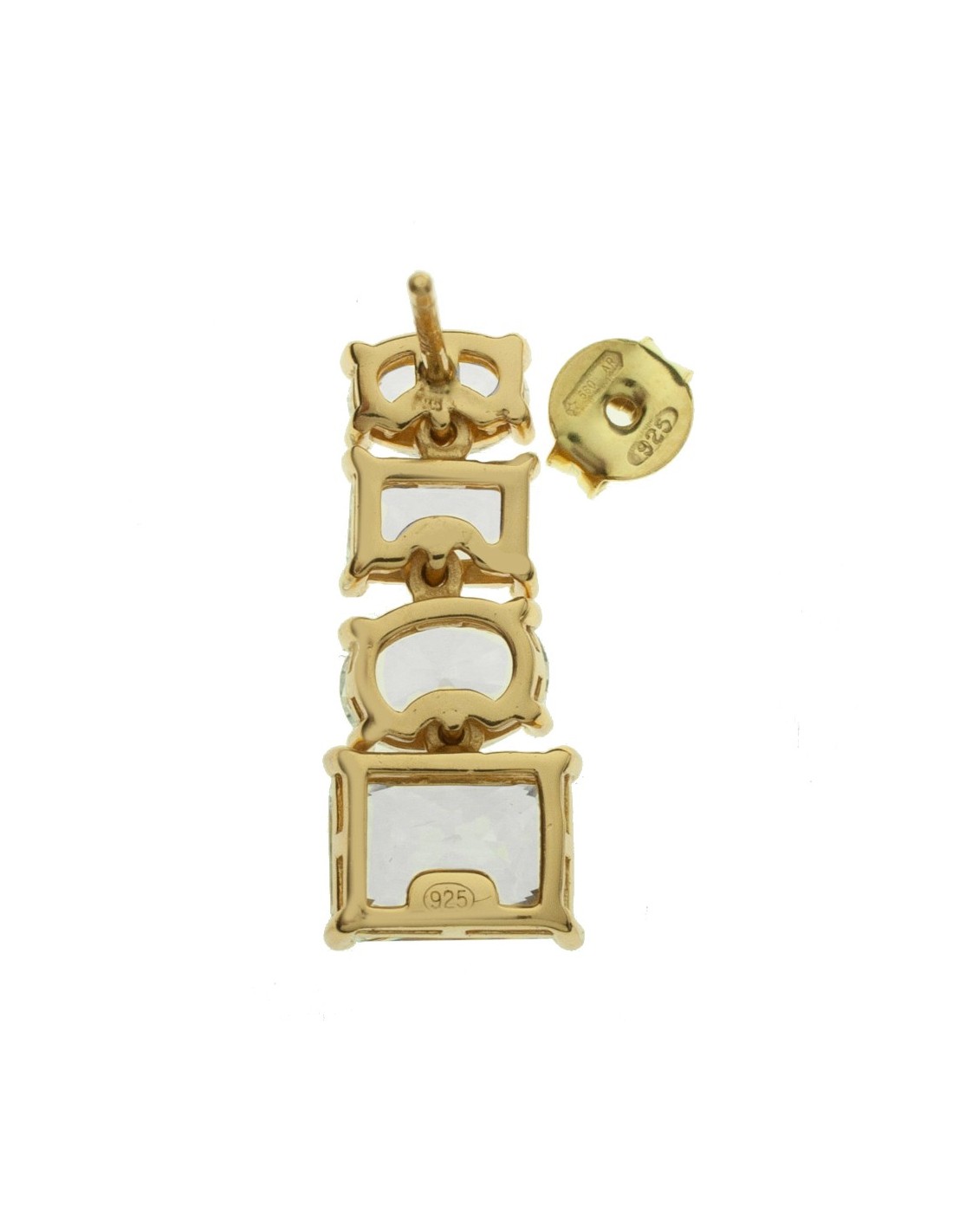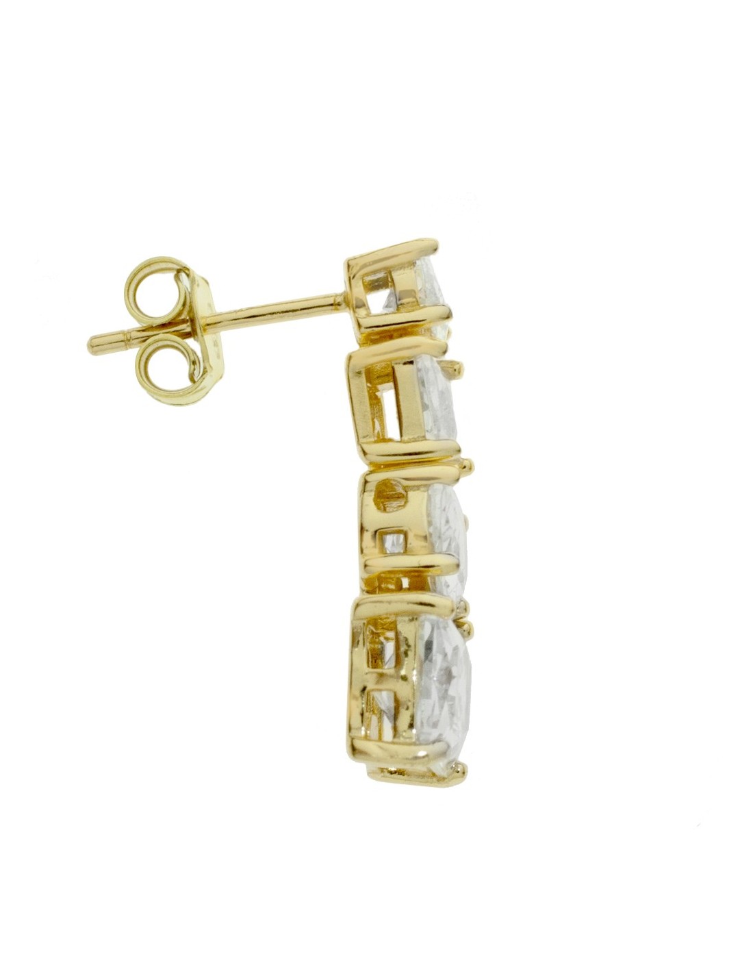 Pendientes largos de fiesta dorados con diseño articulado, con circonitas blancas de talla mixta fabricados en Plata de Ley bañada en Oro.