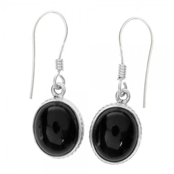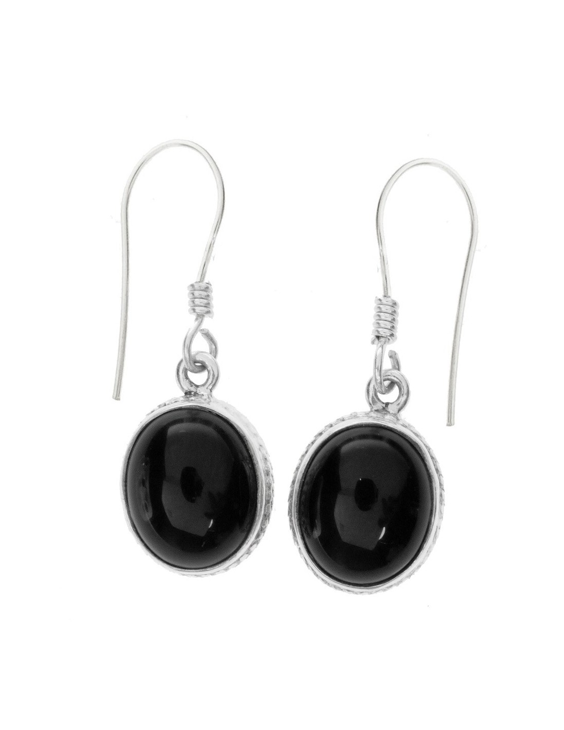 Pendientes largos con ónix ovalado y base de Plata de 1ª Ley 925 con gancho hippie pasante.