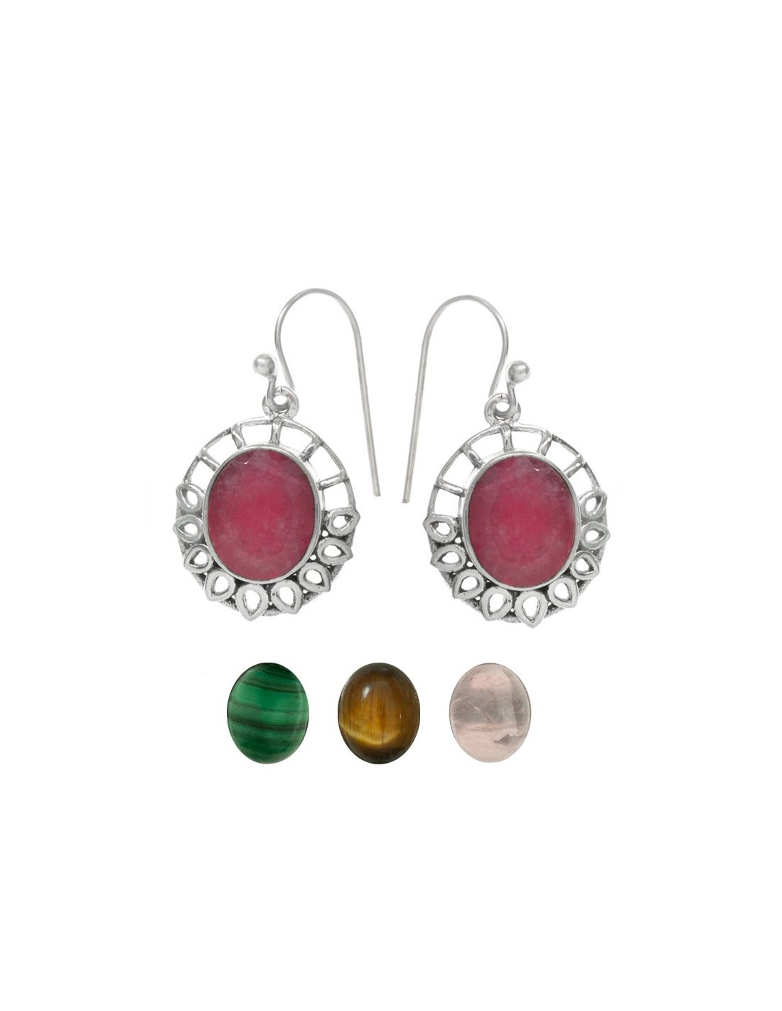 Pendientes piedra oval base calada