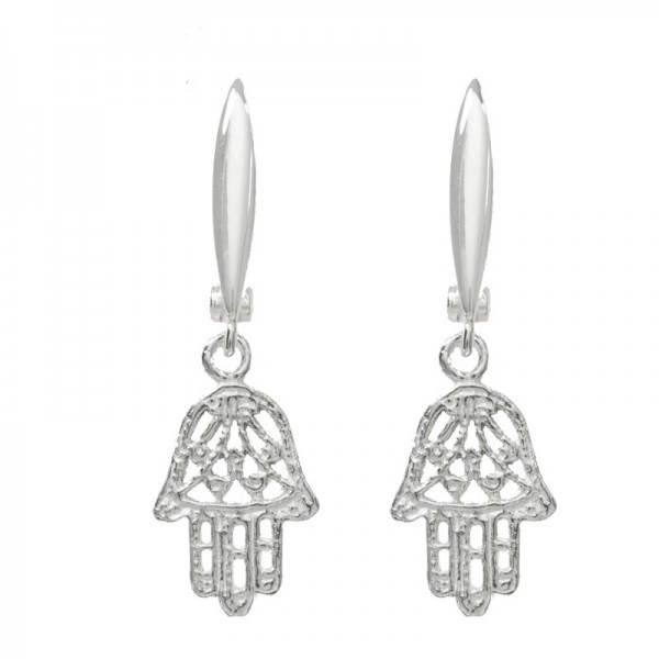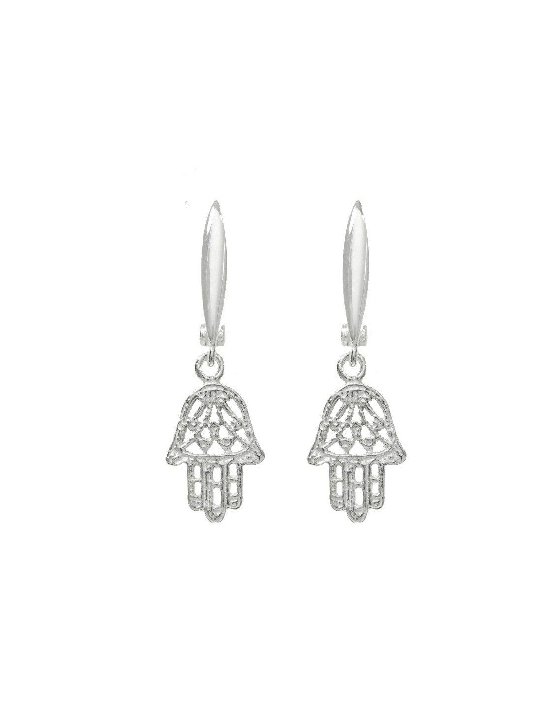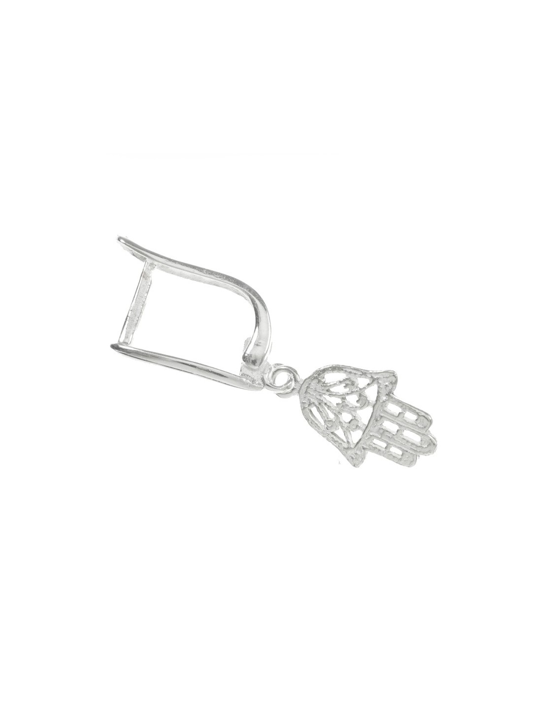 Pendientes mano de Fátima colgante con cierre catalán fabricados en Plata de Ley 925 con acabado liso.