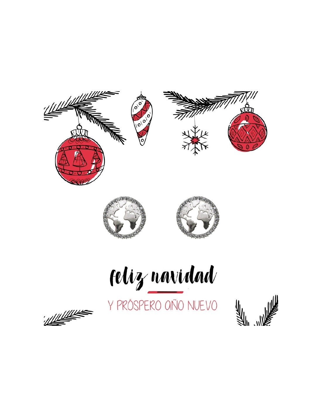 Pendientes Mundo de Plata de Ley 925 con circonitas y tarjeta navideña para regalar.