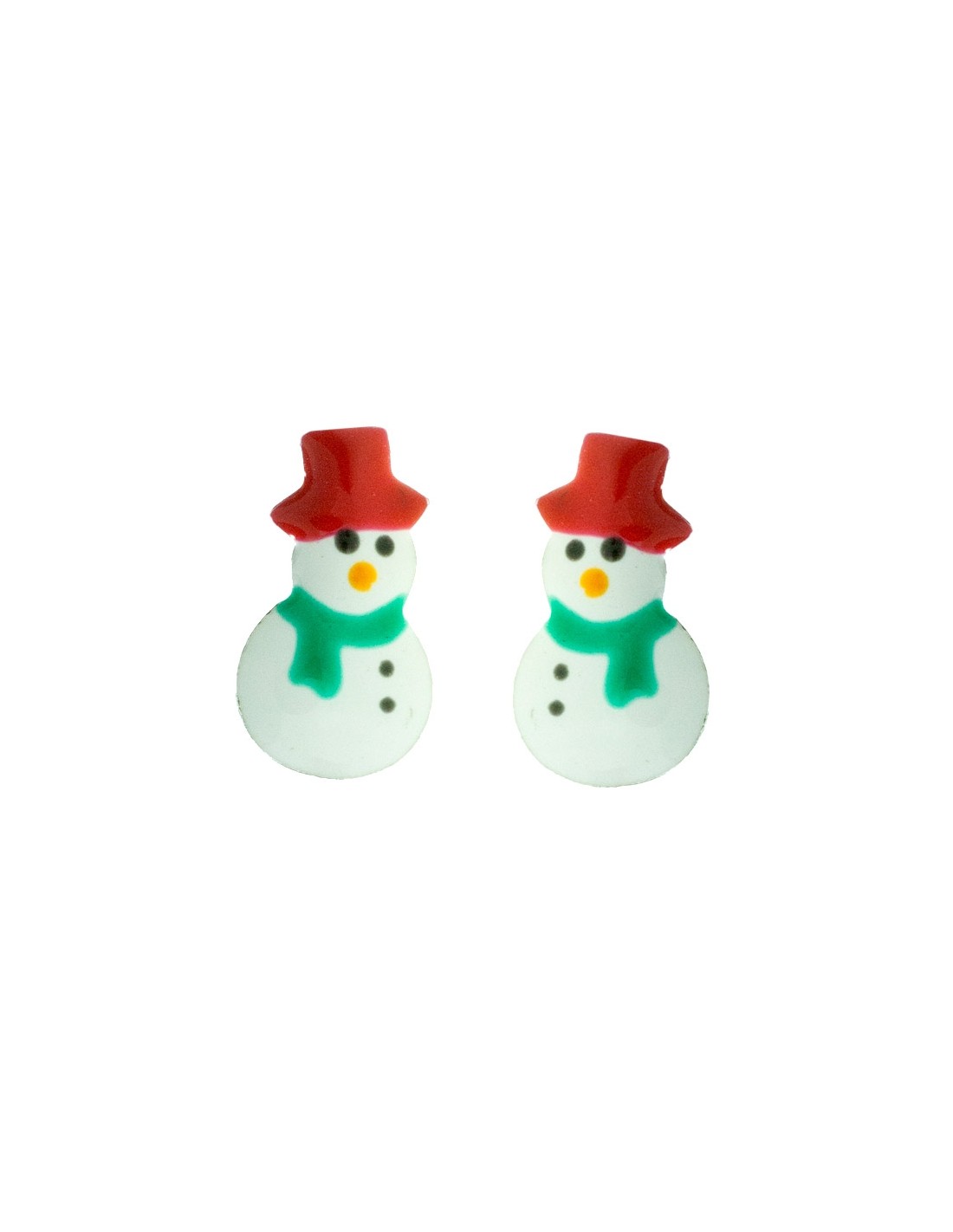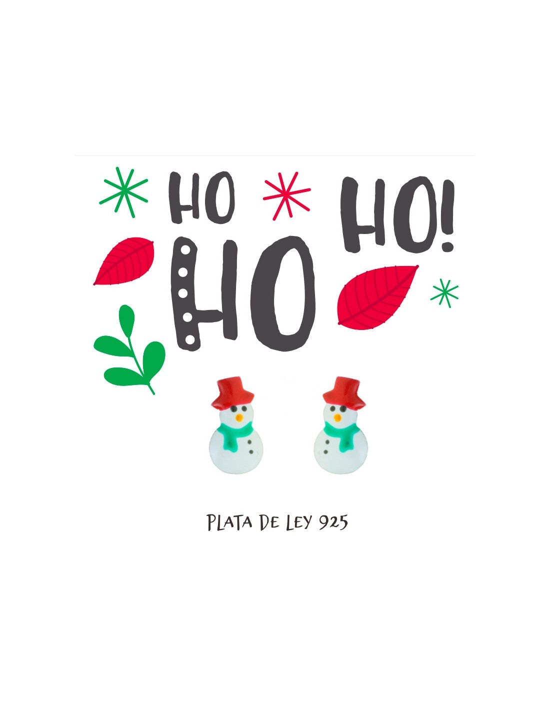 Pendientes infantiles muñeco de nieve esmaltado fabricados en Plata de Ley 925. Incluye tarjeta navideña para regalar.