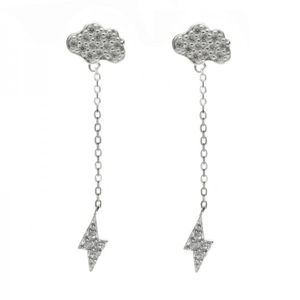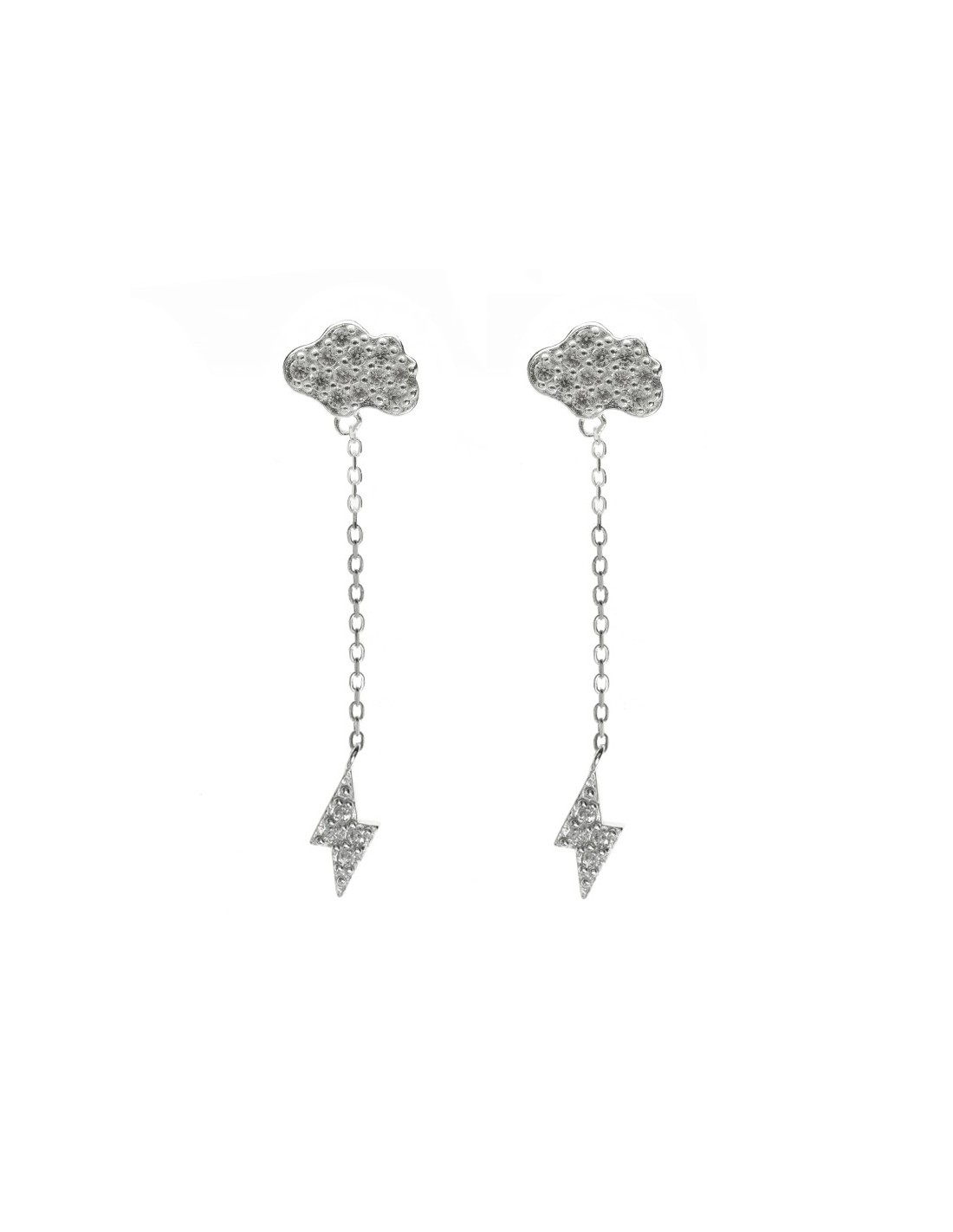 Pendientes nube con rayo con circonitas blancas fabricados en Plata de Ley