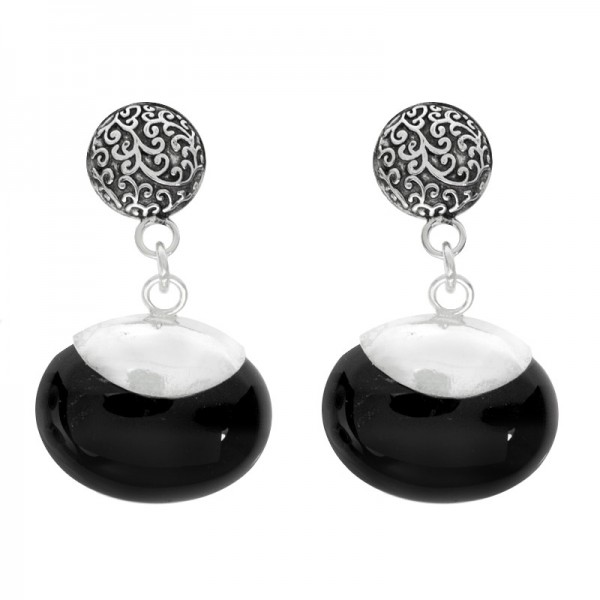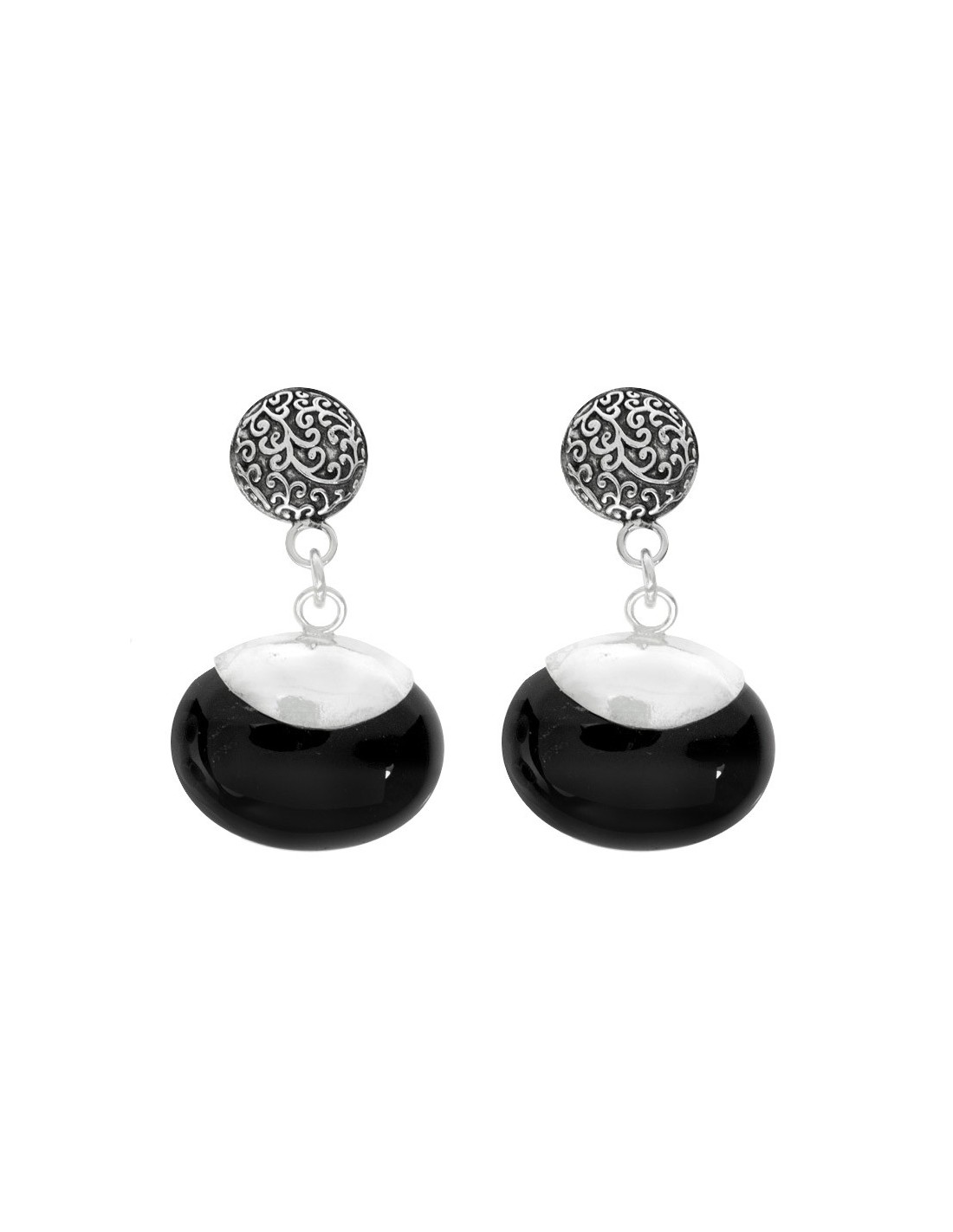 Pendientes ónix óvalo horizontal Plata de Ley - Karissma