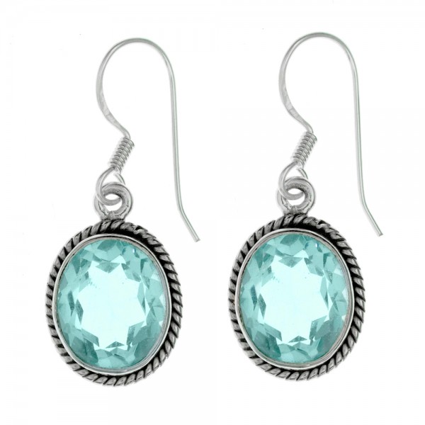 Pendientes óvalo aguamarina Plata de Ley