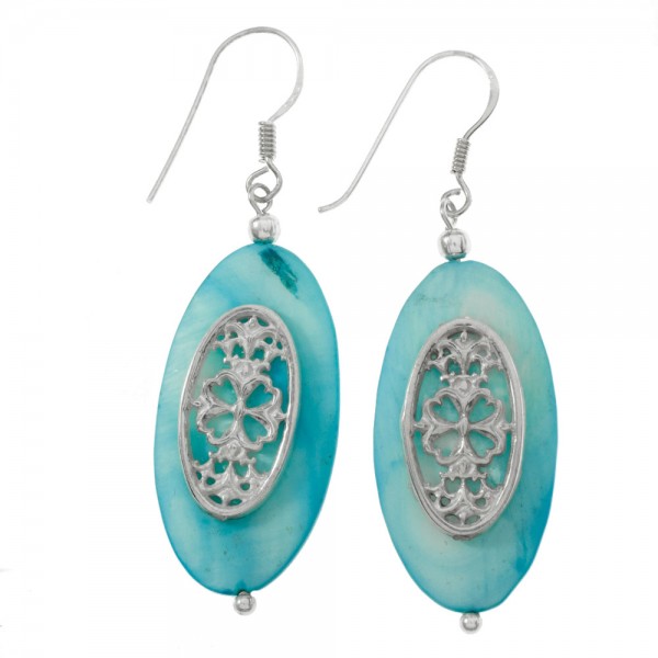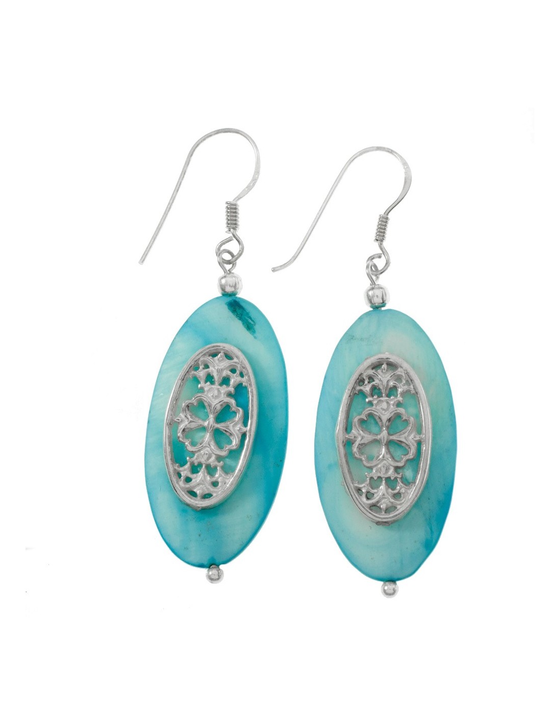 Pendientes óvalo nácar con detalle floral de Plata de Ley 925.