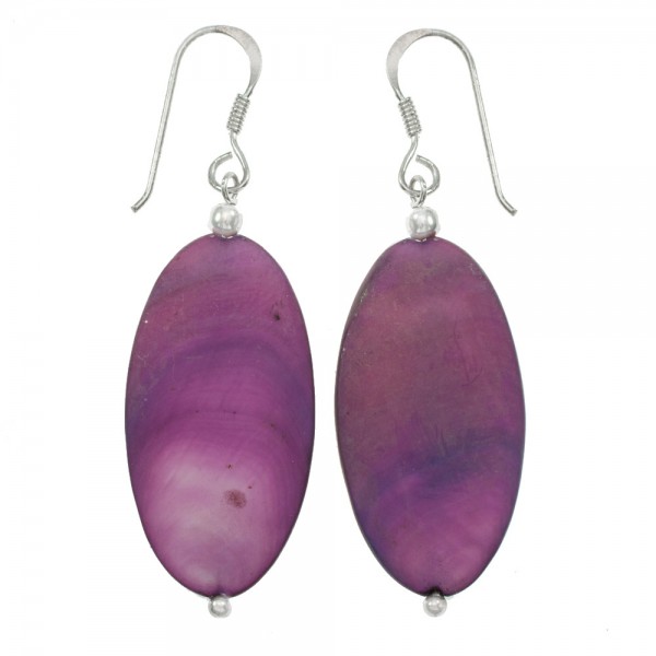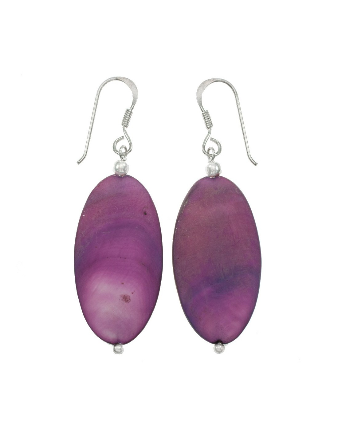 Pendientes óvalo nácar tintado morado con fornituras de Plata de Ley 925.