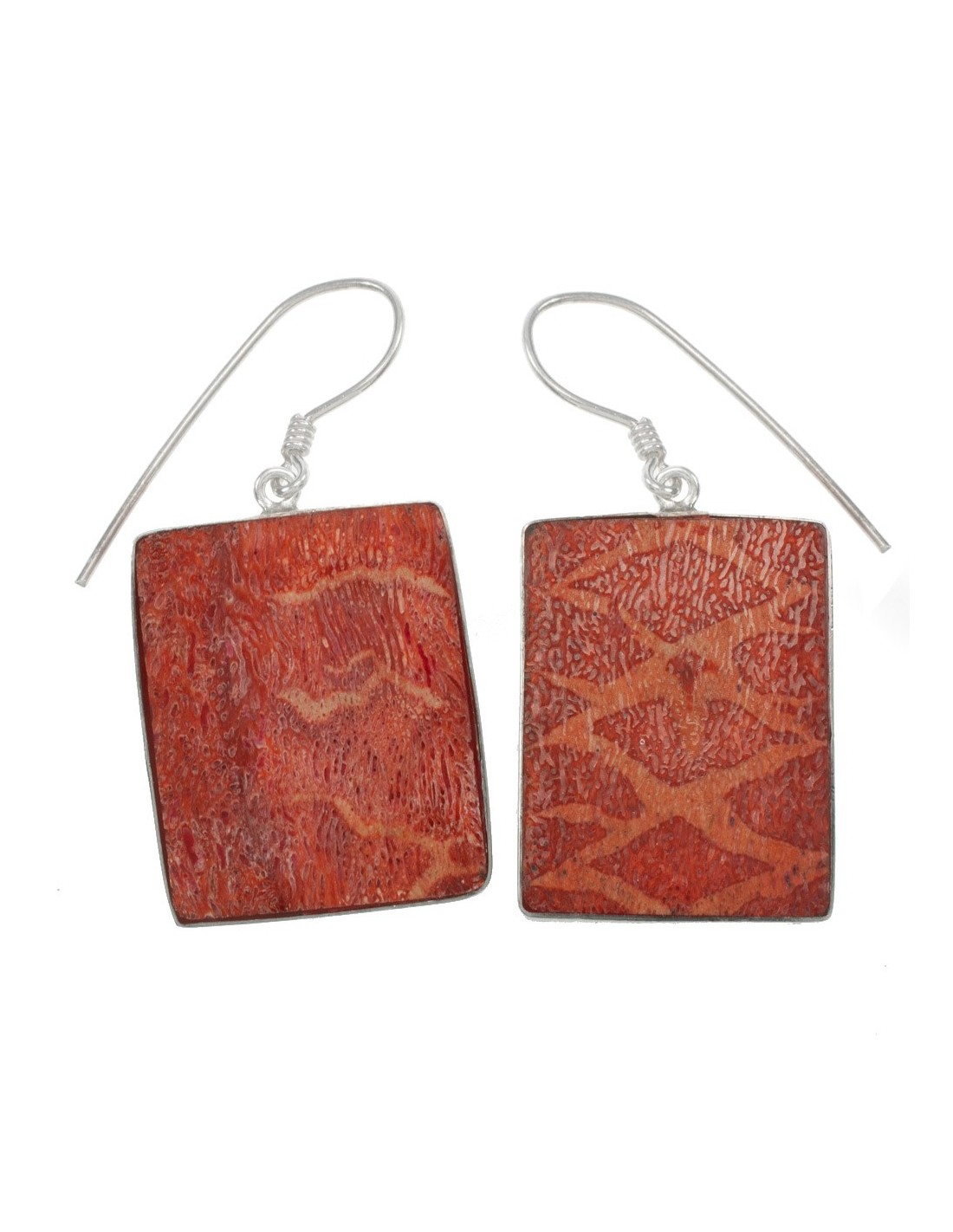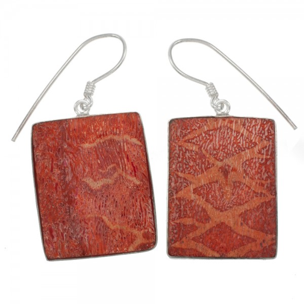 Pendientes rectángulo de coral reconstituido con fornituras de Plata de Ley 925.